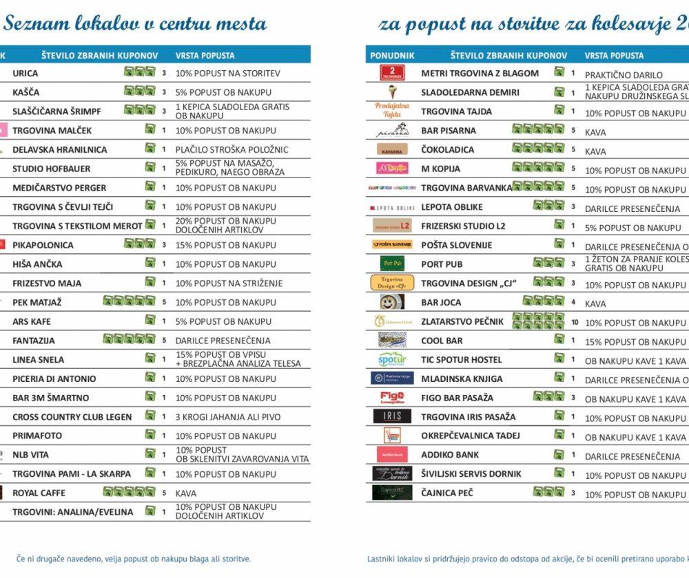 Vsi kolesarji, ki bodo med 1. avgustom in 21. septembrom prišli v center Slovenj Gradca, bodo pri vstopnih parkirnih kabinah prejeli oštevilčen kuponček za popuste, ki so vnovčljivi v vseh lokalih, označeni z napisom “Kolesarju prijazen lokal”, pove vodja projekta Vladimir Jarh Nikolič, ter da bodo s številnimi dejavnostmi tudi letos pokazali kako uresničujejo že leta 2016 zastavljene “zelene” cilje in da projekt poleg vseh popustov in potencialnih nagrad prinaša tudi spodbudo okolju, zdravju, gospodarstvu ter medčloveškim odnosom.