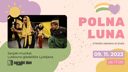 V četrtek, 9. novembra 2023, ob 17. uri bo v Narodnem domu Mežica na sporedu druga abonmajska predstava Polna luna v izvedbi Lutkovnega gledališča Ljubljana.