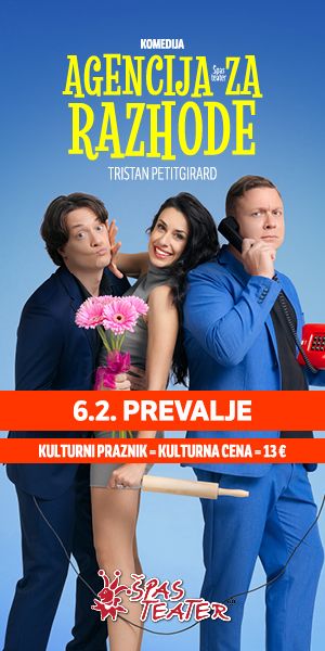 Na Prevalje prihaja po mnenju gledalcev najboljša komedija leta! Špas teater, najbolj priljubljeno gledališče v Sloveniji predstavlja Agencijo za razhode – komedijo v kateri se ločitve končajo s huronskim smehom. Ob kulturnem prazniku so zvestim obiskovalcem na Koroškem pripravili tudi »kulturno ceno«, vstopnica stane samo 13 €, zato je to še dodaten razlog za ogled.