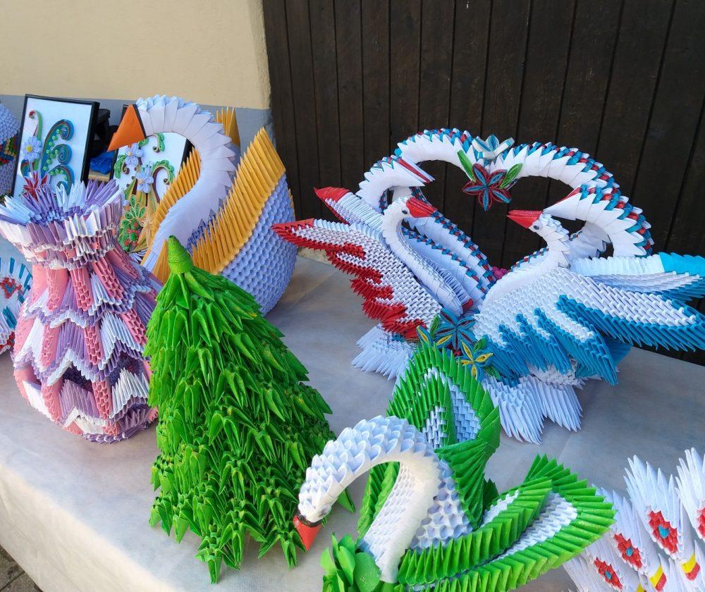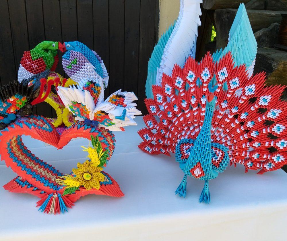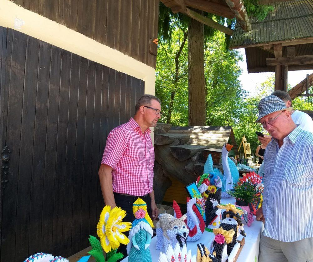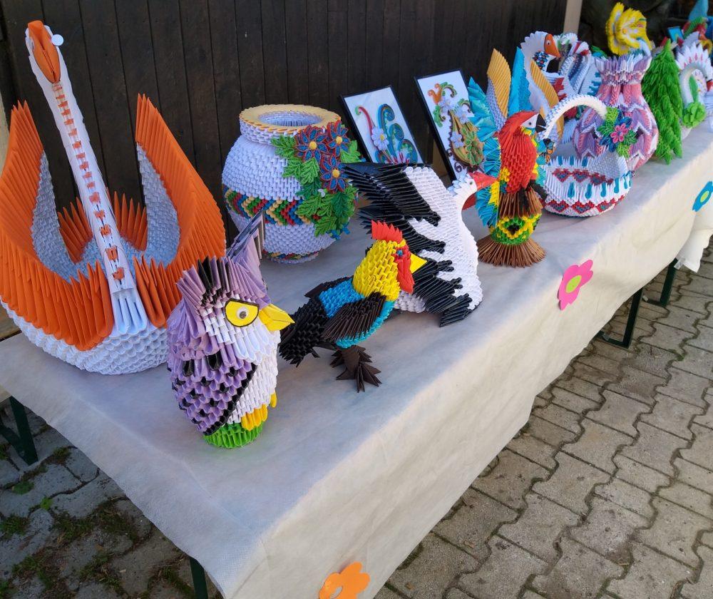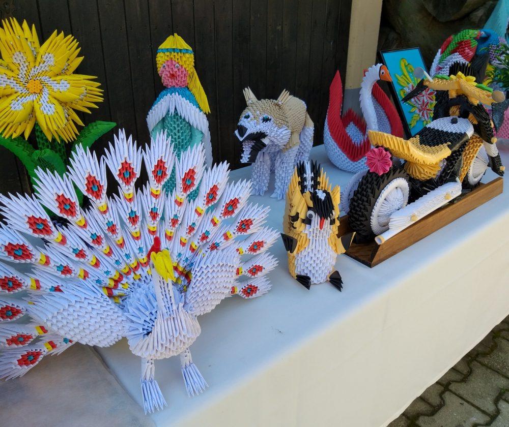 Na stojnicah je bilo med drugim na ogled tudi razstava Milana Pika, upokojenca iz Mežice, ki je zadnji dve leti veliko časa namenil izdelovanju različnih izdelkov iz papirja z origami in kviling tehniko, ki ju kombinira tudi z lesom, občasno pa izdela še kakšen bonsaj ali kaj iz lesa, kakšno mesoreznico ali pa okrasek.