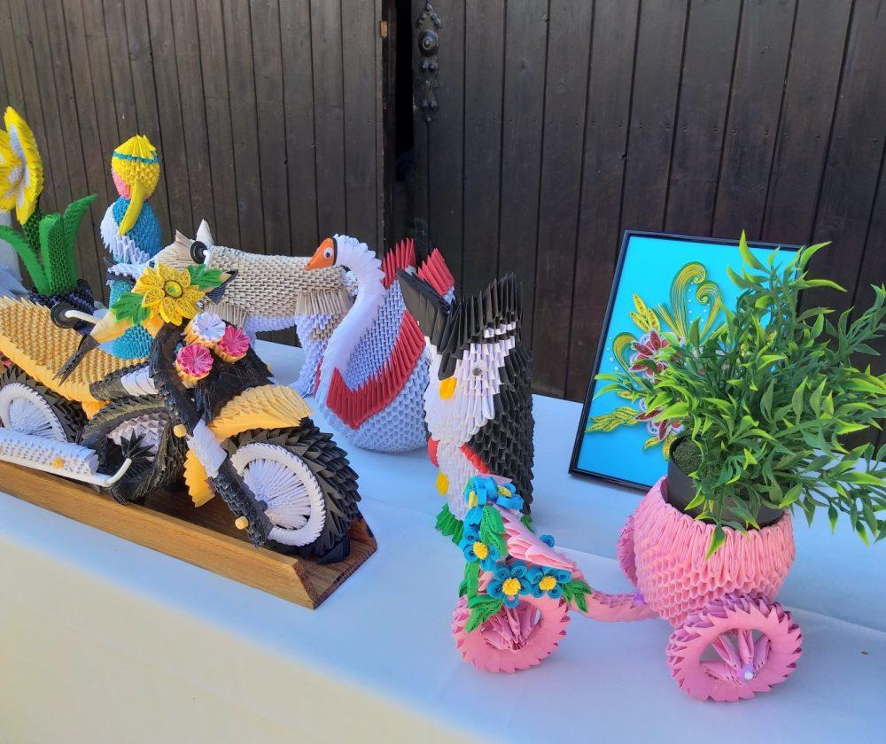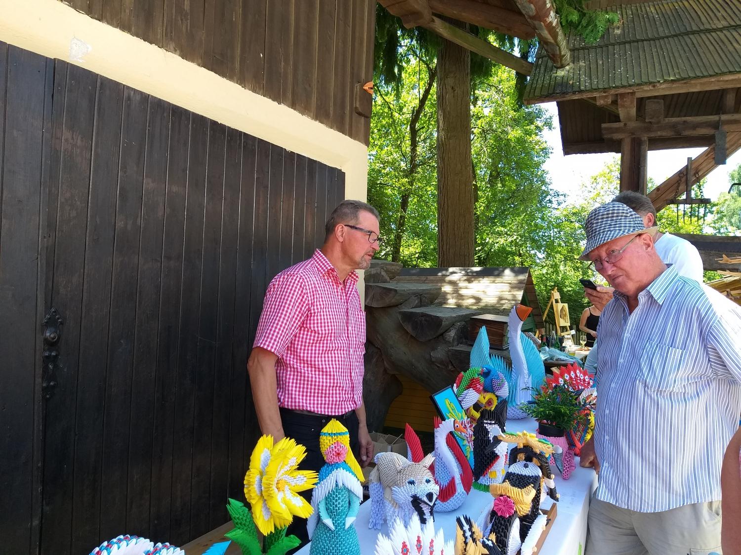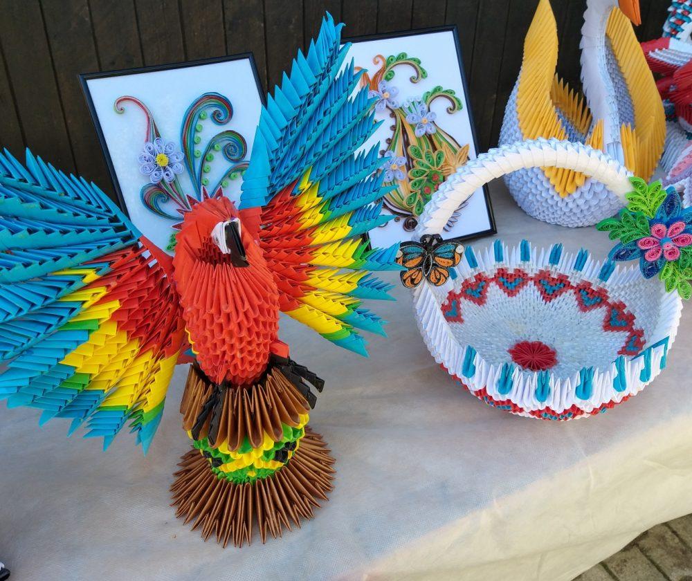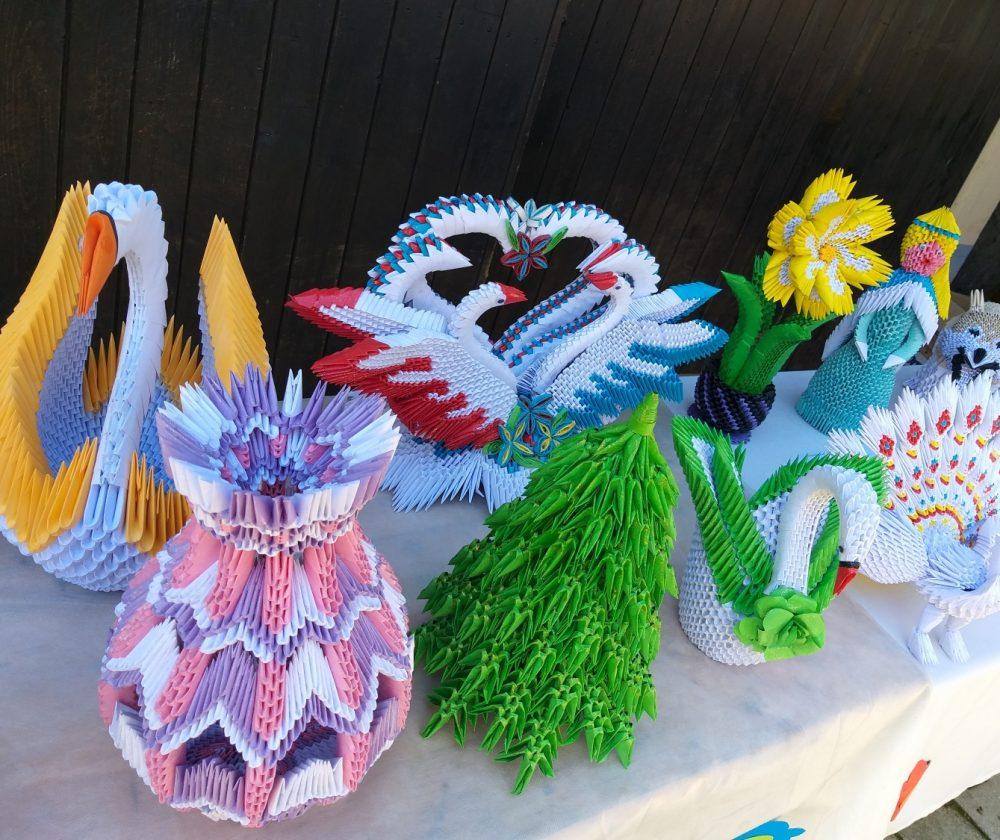 Na stojnicah je bilo med drugim na ogled tudi razstava Milana Pika, upokojenca iz Mežice, ki je zadnji dve leti veliko časa namenil izdelovanju različnih izdelkov iz papirja z origami in kviling tehniko, ki ju kombinira tudi z lesom, občasno pa izdela še kakšen bonsaj ali kaj iz lesa, kakšno mesoreznico ali pa okrasek.