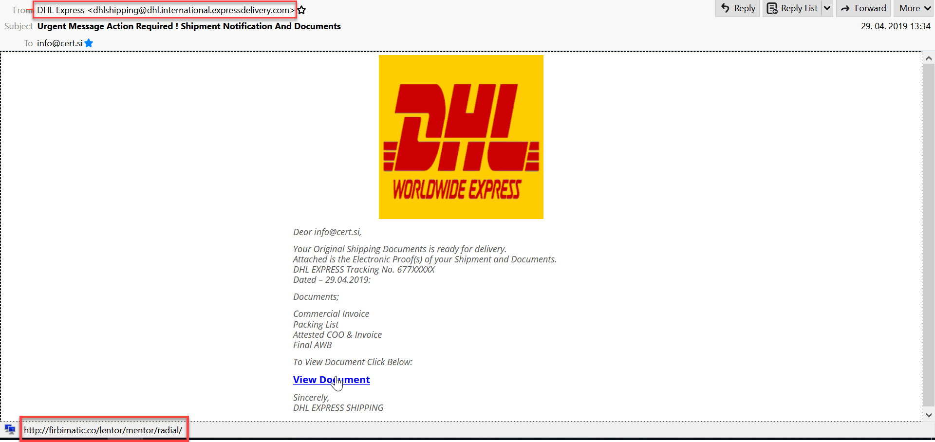 Posledica rasti spletnega nakupovanja v zadnjih mesecih so tudi obvestila dostavnih služb, opozarjajo in dodajajo, da na Si-Cert od marca prejemajo številne prijave zaradi zavajajočih elektronskih sporočil, ki zlorabljajo podobo in ime podjetij Pošta Slovenije in DHL. "Goljufi pošiljajo lažna obvestila, da nas čaka paket, plačati moramo le še stroške dostave," opozarjajo in dodajajo: "Vendar nepremišljen klik na povezavo pelje na lažno spletno stran, kjer naj bi vpisali kreditno kartico. Posledično lahko goljuf pridobljene podatke zlorabi in kreditno kartico uporabi za nakupe na drugih spletnih mestih ter povzroči precejšnjo finančno škodo."