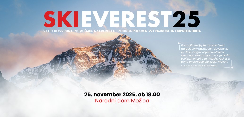 Ob tej pomembni obletnici vas ekipa Narodnega doma Mežica in člani odprave Ski Everest 2000 vabijo, da se jim pridružite na posebnem dogodku Ski Everest 25, ki bo potekal v torek, 25. novembra 2025, ob 18. uri, v Narodnem domu Mežica.