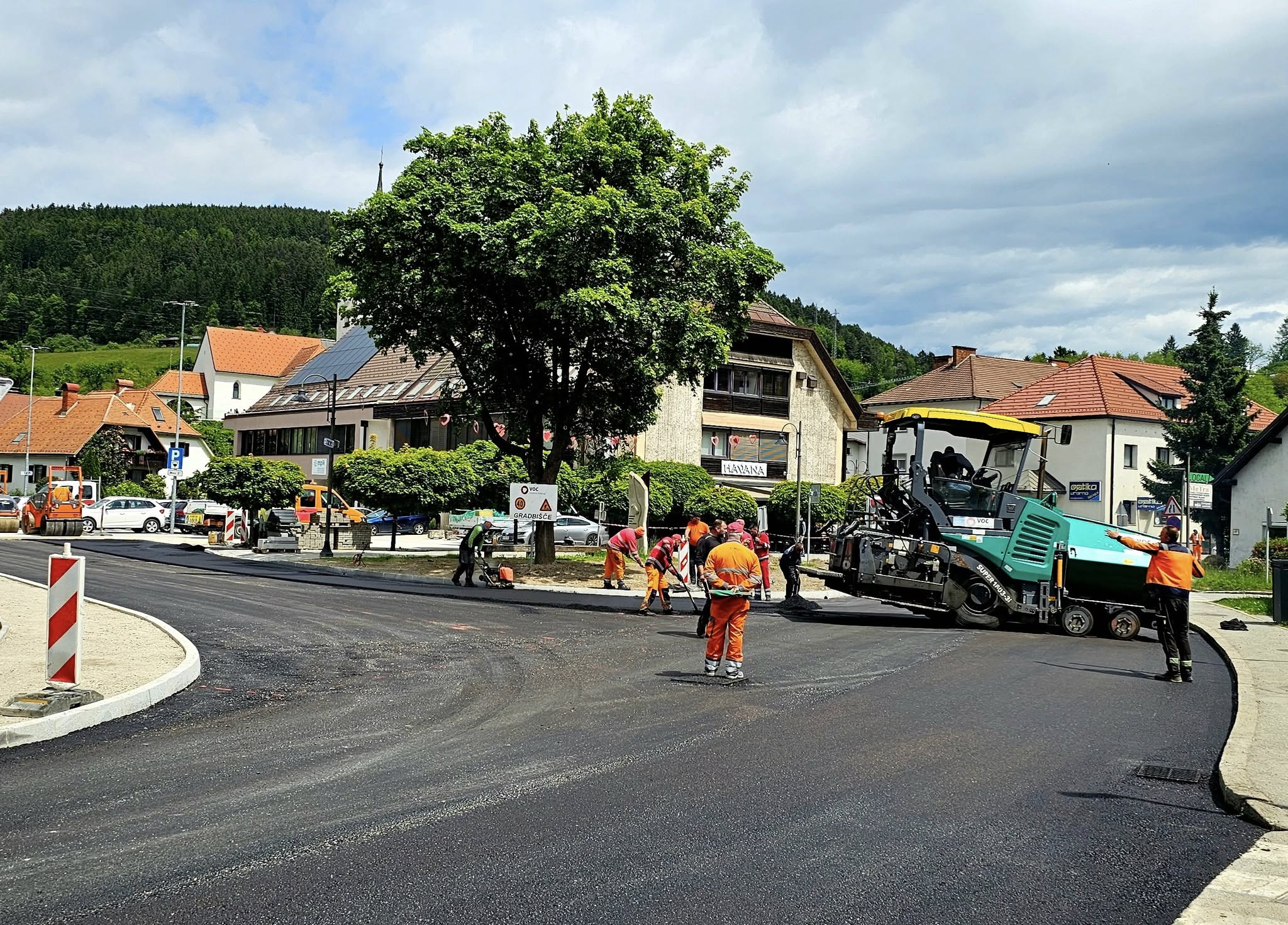 Z asfaltiranjem so včeraj zaključili in promet bo na tem odseku na Ravnah na Koroškem odslej znova potekal brez večjih posebnosti.