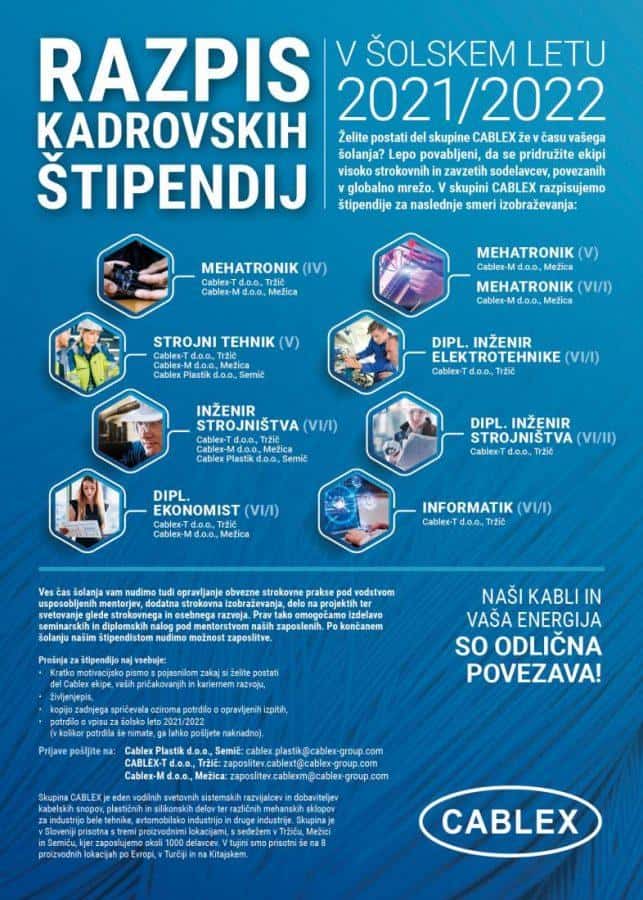 V skupini Cablex razpisujejo štipendije za naslednje smeri izobraževanja: