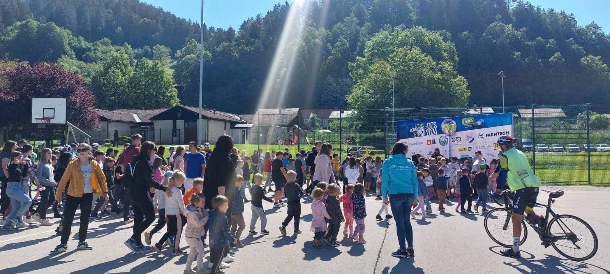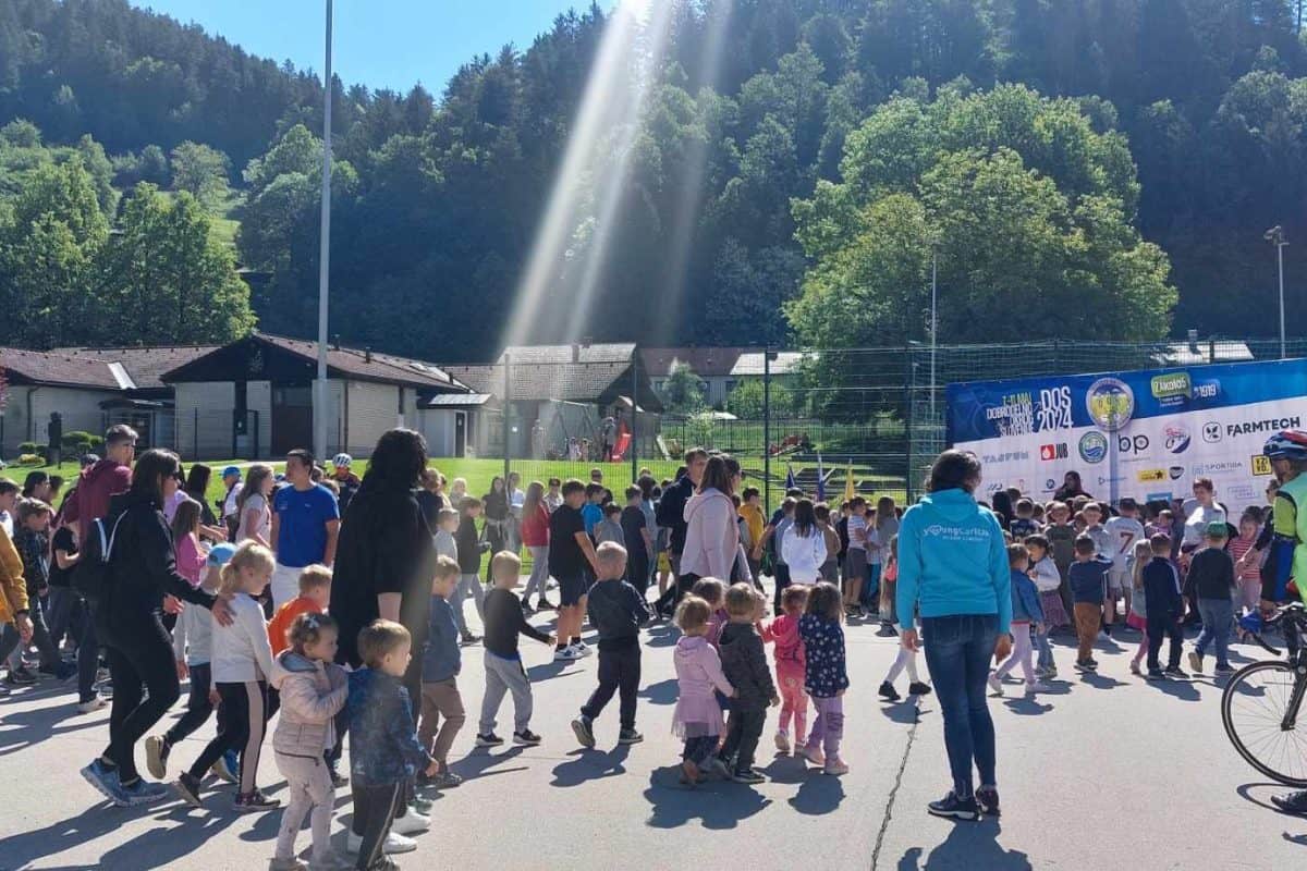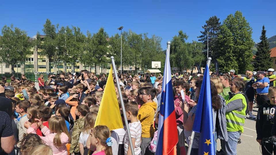 Kolesarje, ki bodo prekolesarili več kot 1200 km okoli Slovenije, so skupaj z učenci in učitelji OŠ in vrtca Vuzenica bučno pozdravili v njihovem športnem parku. "Verjamemo, da smo kolesarjem dodali novo energijo za pot, ki jih čaka. Želimo jim vse dobro na njihovi plemeniti poti," je ob dogodku povedal Golob.