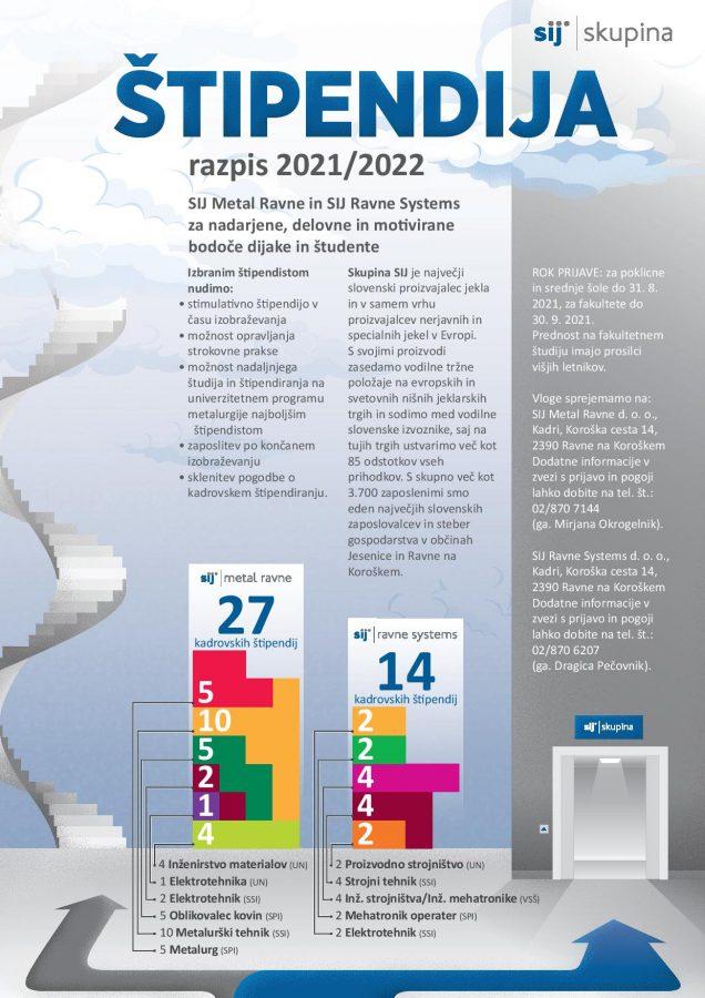 SIJ Metal Ravne nudi 27 kadrovskih štipendij, SIJ Ravne Systems pa 14. Izbranim štipendistom nudijo stimulativno štipendijo v času izobraževanja, možnost opravljanja strokovne prakse, možnost nadaljnjega študija in štipendiranja na univerzitetnem programu metalurgije najboljšim štipendistom, zaposlitev po končanem izobraževanju ,sklenitev pogodbe o kadrovskem štipendiranju.