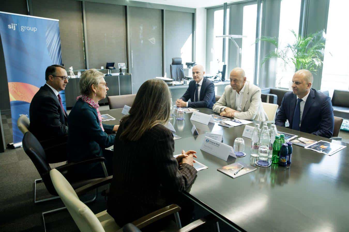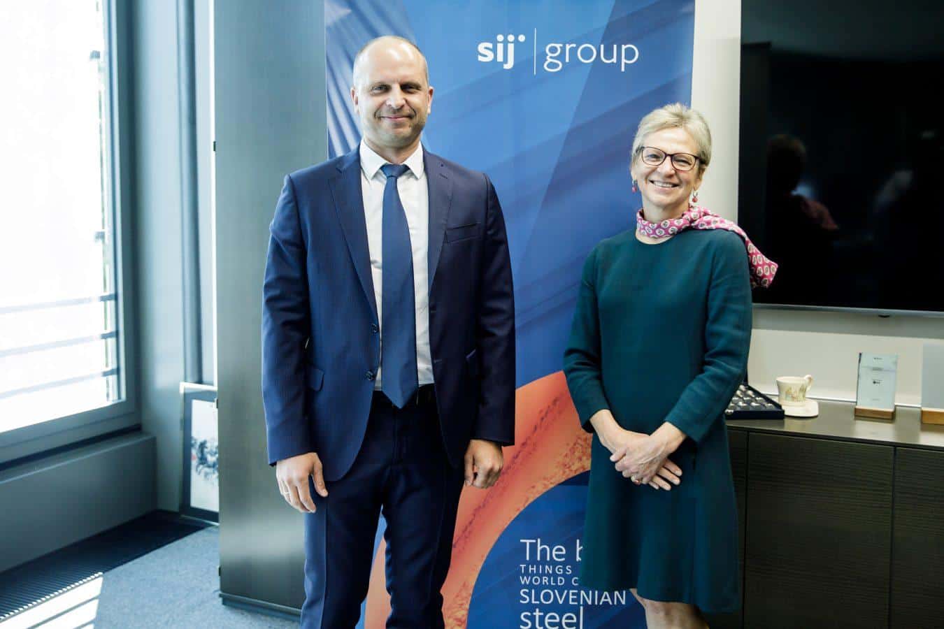 Na sedežu Skupine SIJ – Slovenska industrija jekla je včeraj potekalo redno srečanje med EBRD in Skupino SIJ. Vodstvo Skupine SIJ se je sestalo z delegacijo EBRD, ki jo je vodila Charlotte Ruhe, direktorica za Srednjo in Jugovzhodno Evropo. Charlotte Ruhe, ki je Skupino SIJ obiskala že leta 2018, je v okviru delovnega obiska v Sloveniji z vodstvom največje slovenske metalurške skupine razpravljala o prihodnjih naložbenih načrtih in možnostih za sodelovanje.