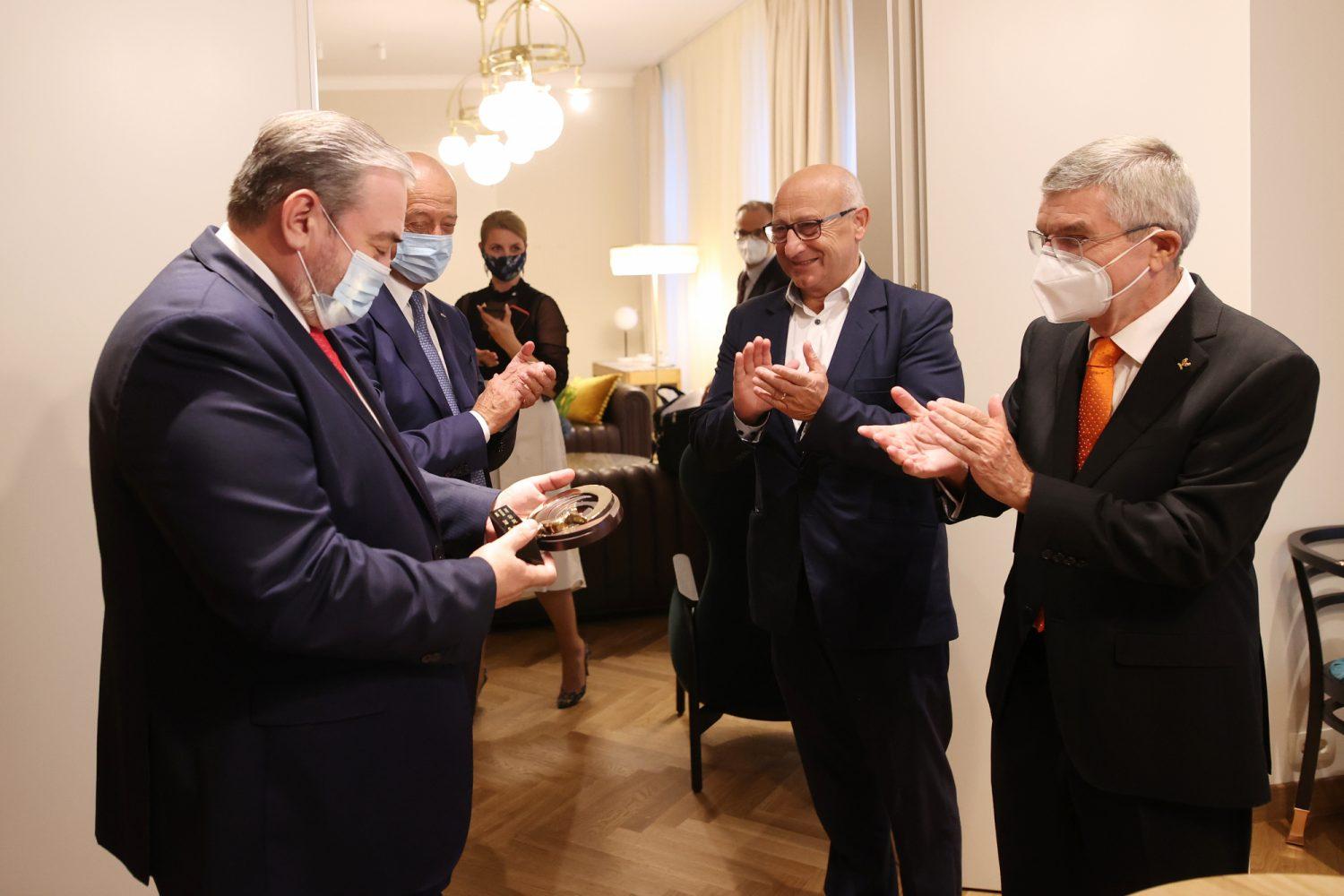 Priznanje MOK 2019 za razvijanje športnih objektov z uporabo trajnostnih materialov je Andreyu Zubitskiyu, predsedniku uprave Skupine SIJ, med svojim uradnim obiskom v Sloveniji podelil predsednik MOK Thomas Bach.