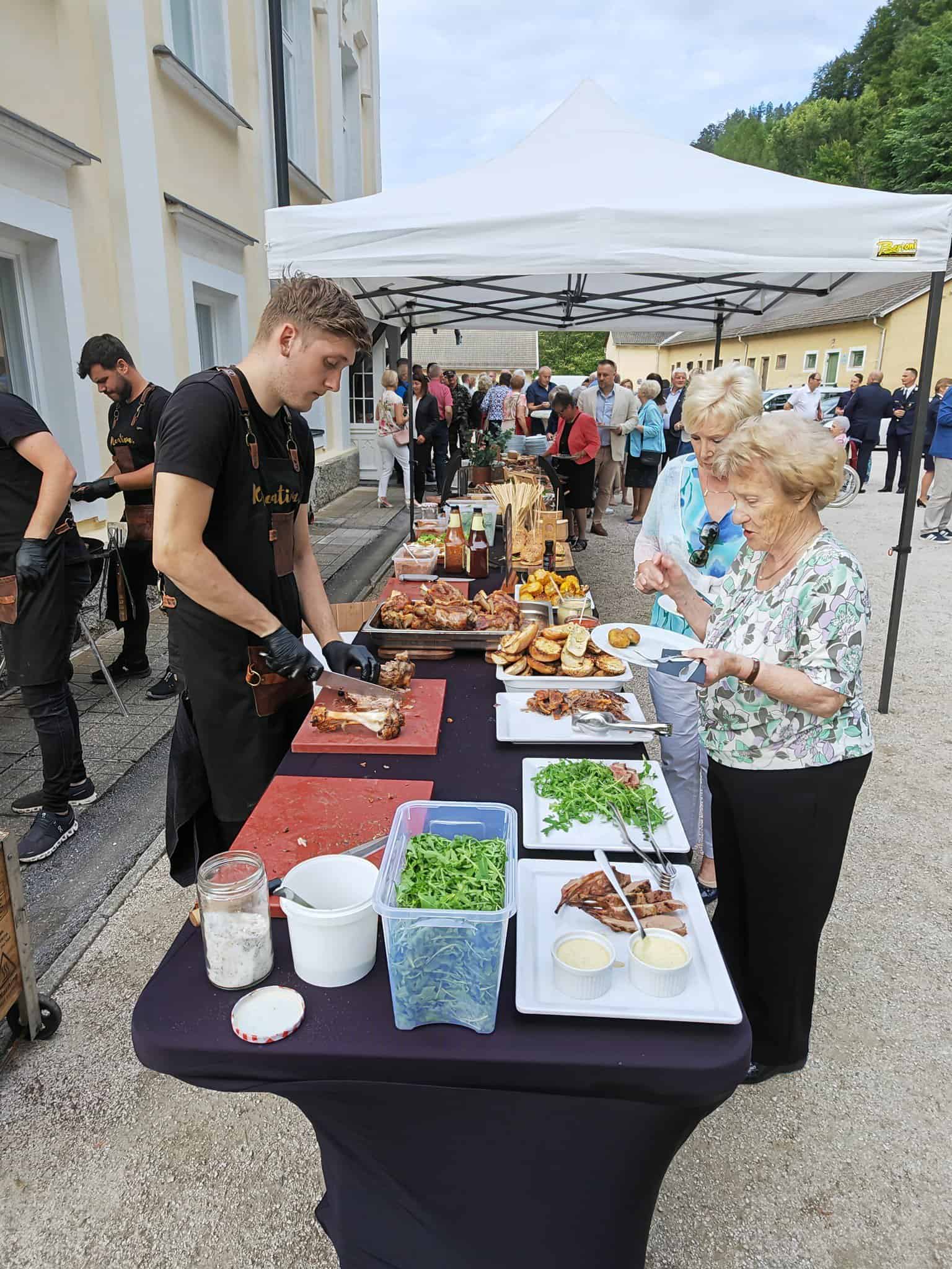 Po uradnem delu so se v prijetnem ambientu dvorišča dvorca Bukovje družili ob odlični hrani in nazdravili z občinskimi nagrajenci.