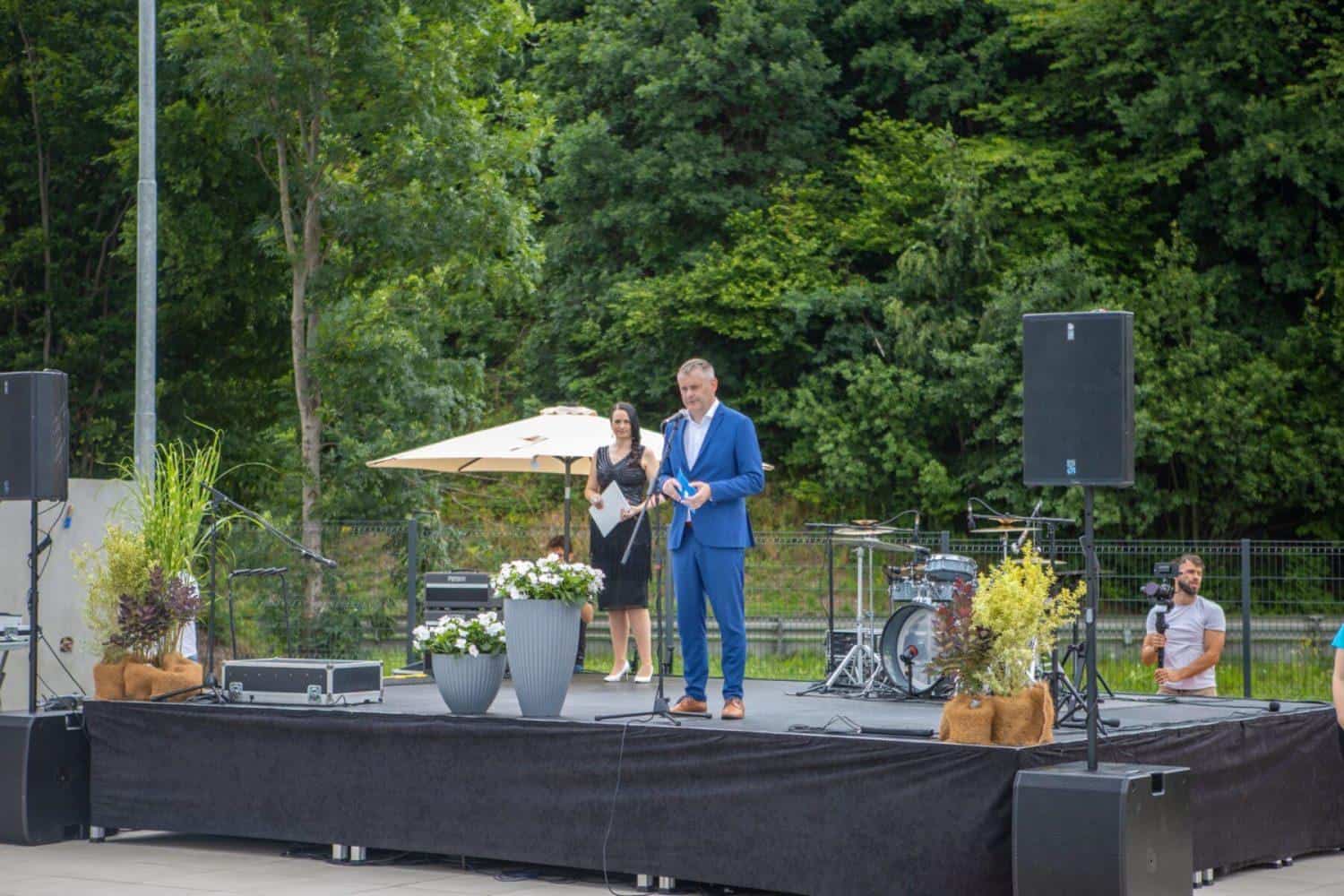 Župan Klugler je danes izpostavil zahtevne razmere v času gradnje kompleksa, ki so jih krojile tako epidemija covida-19 kot težave pri dobavi materialov. Ne glede na to pa se je gradnja bazenskega kompleksa zaključila v predvidenem roku, medtem ko se je ravno zaradi zamud pri dobavah za nekaj mesecev zavlekla gradnja parka urbanih športov. Po napovedih bodo enega najsodobnejših parkov urbanih športov pri nas, ki se bo raztezal na dobrih 2500 kvadratnih metrih, odprli septembra.