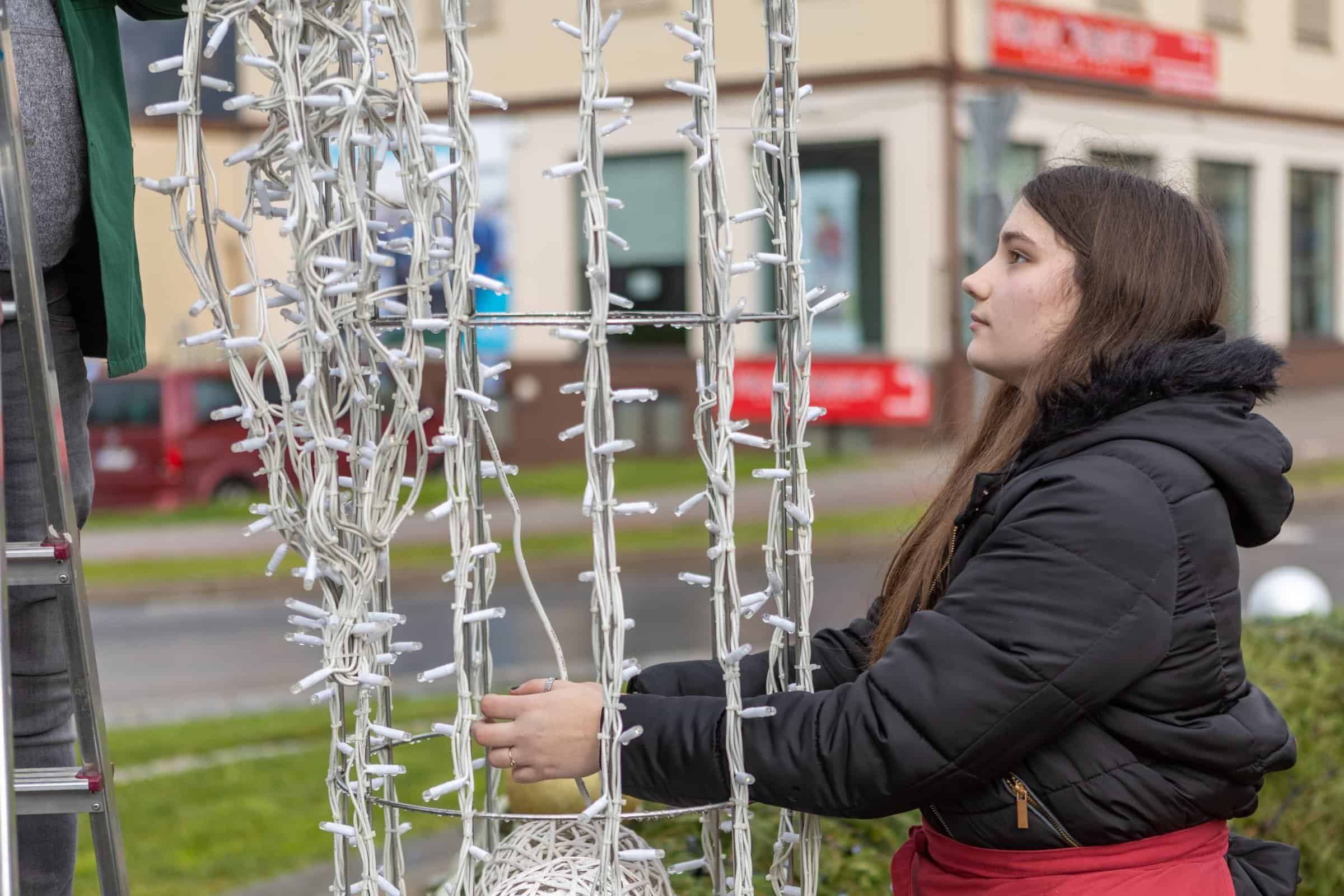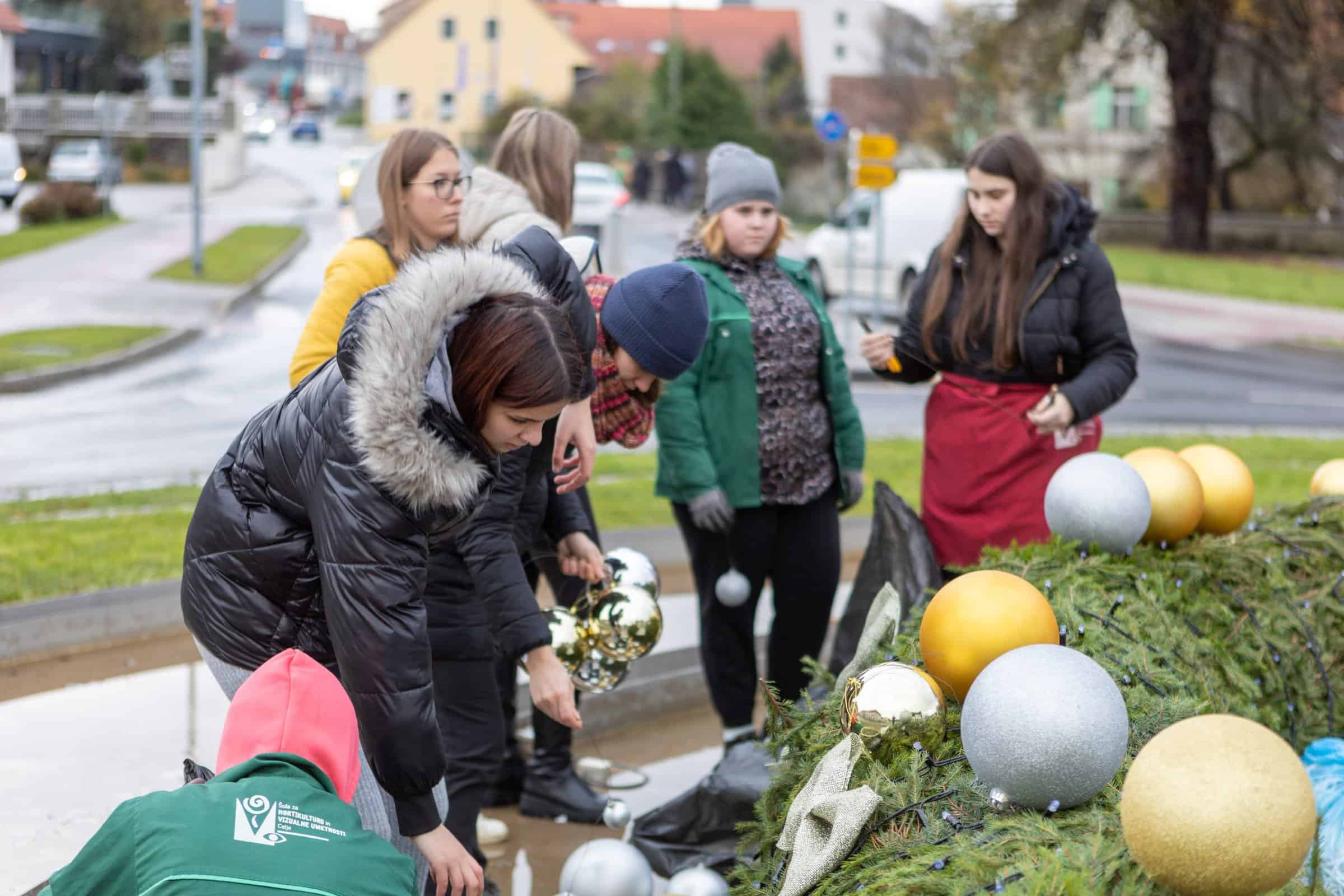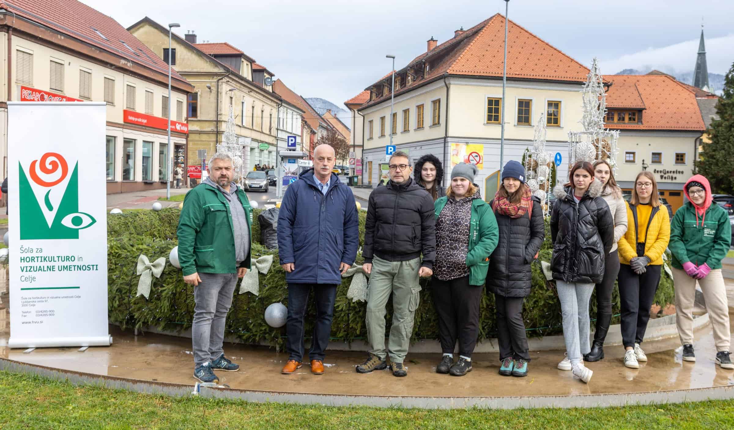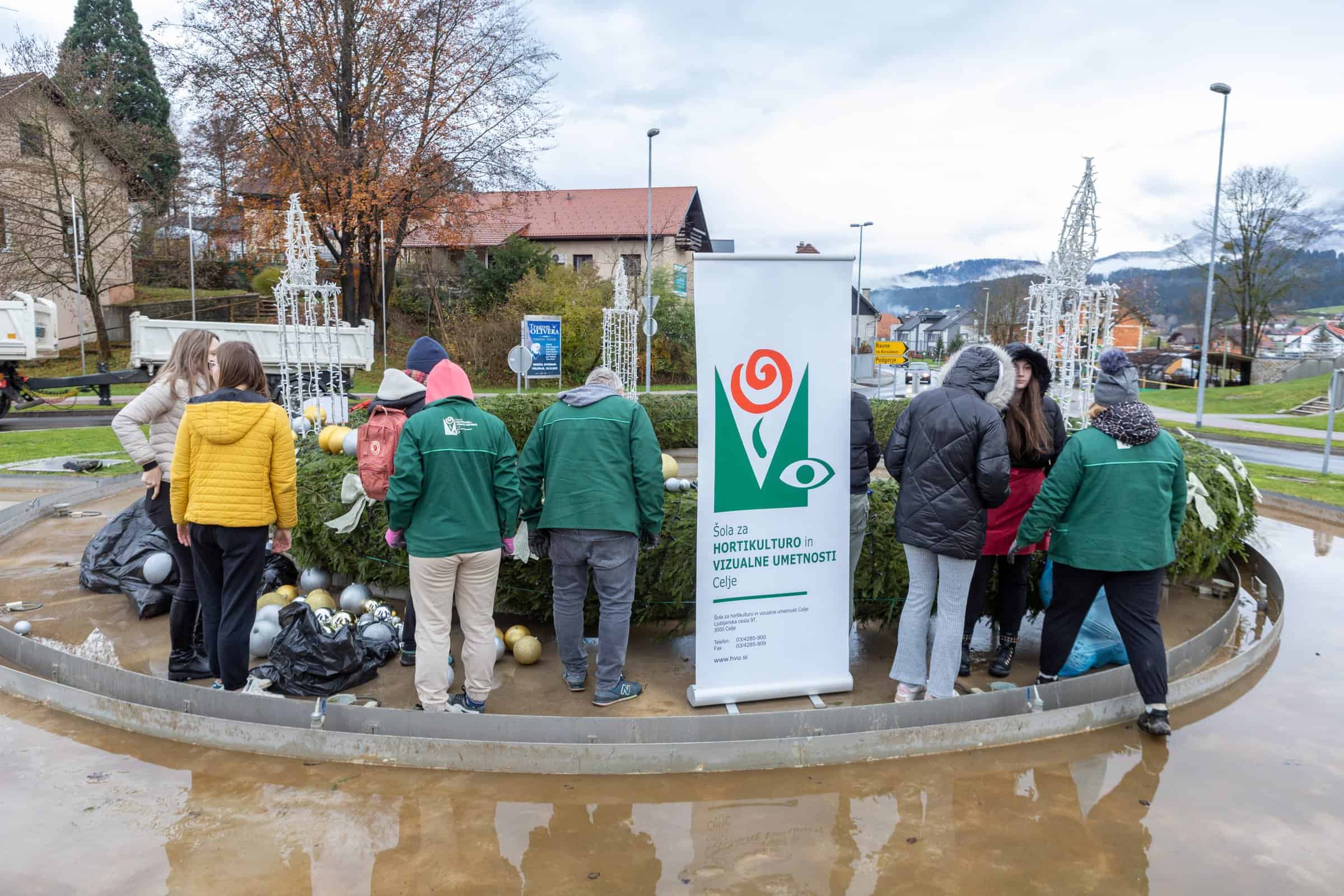 Dijaki Šole za hortikulturo in vizualne umetnosti Celje so v Slovenj Gradcu adventni venec okrasili že drugo leto. Njihova profesorja Sergej Kos in Matjaž Pustoslemšek sta povedala, da dijaki radi opravijo to delo, tako da nimajo težav, ko jih povabijo, naj se prijavijo za dekoriranje.