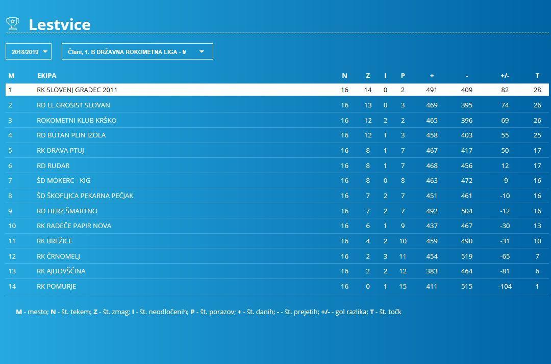 ostaja na vrhu 1.B ligaške lestvice, na drugem in tretjem mestu pa jim