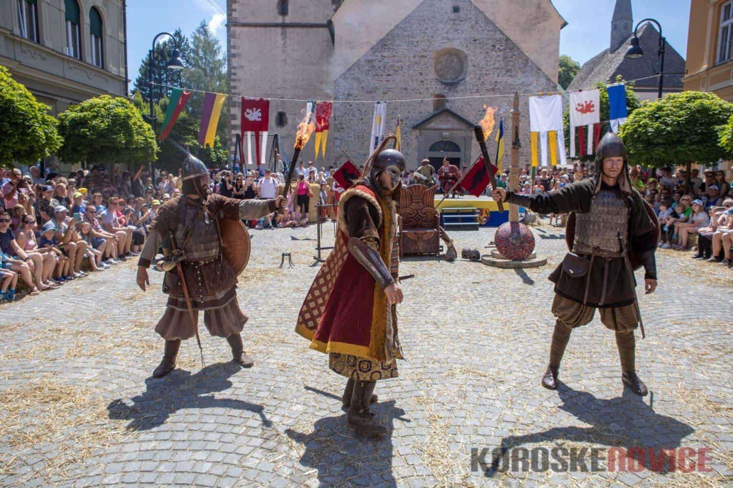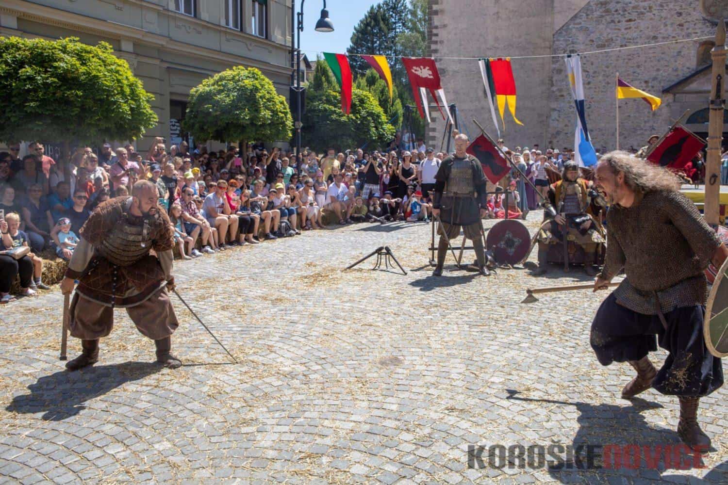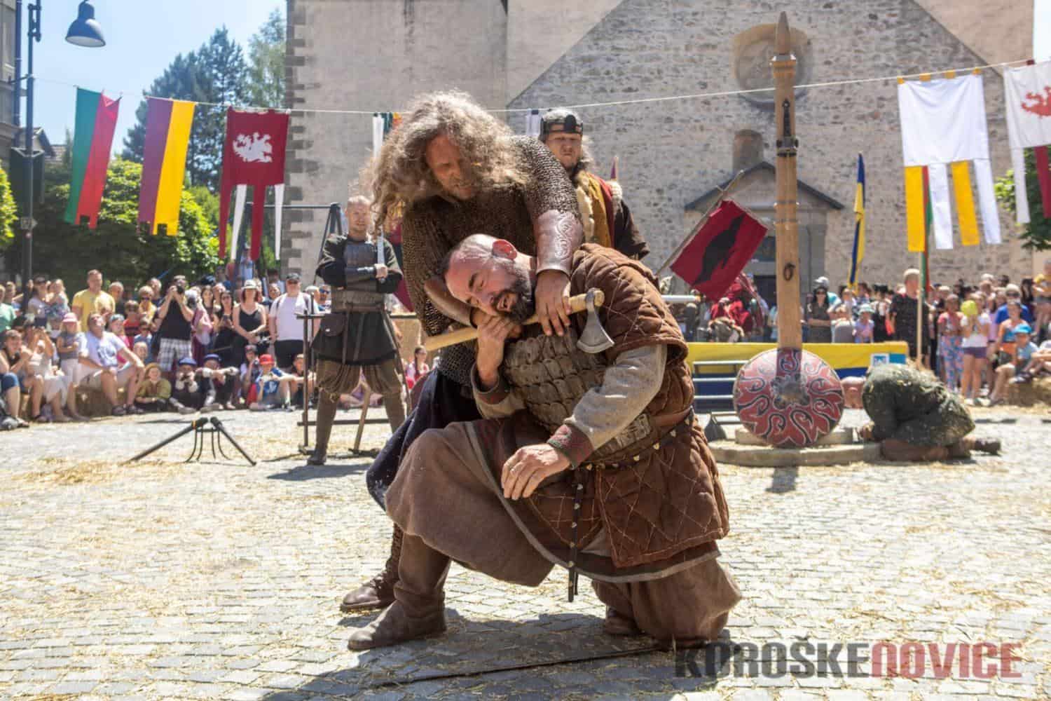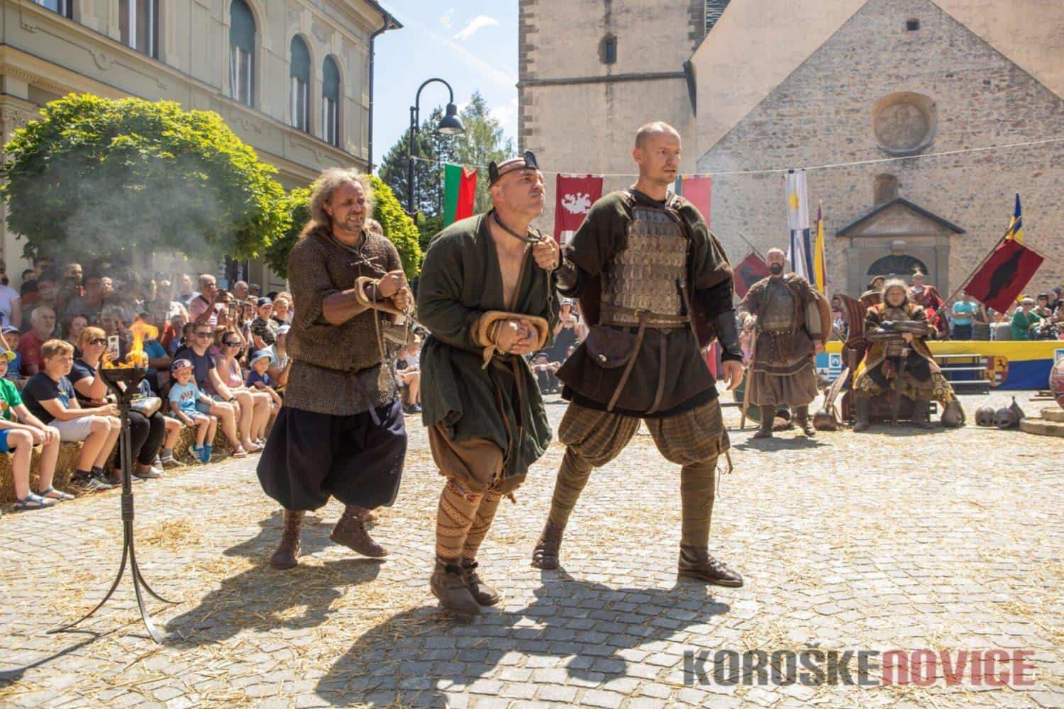 V Slovenj Gradec pa vabljeni še vse do večera in tudi jutri, ko boste lahko trgovali, barantali in kupovali boste z orginalnimi srednjeveškimi novčiči, iz nekdanje mestne kovnice. Tudi skrb, kaj boste kuhali, je odveč, Krčma pri merjascu in številni obrtniki skrbi za srednjeveško razvajanje brbončic. Za popestritev pa bodo med drugim poskrbeli tudi bruhalci ognja in bojevniki češke viteške skupine.