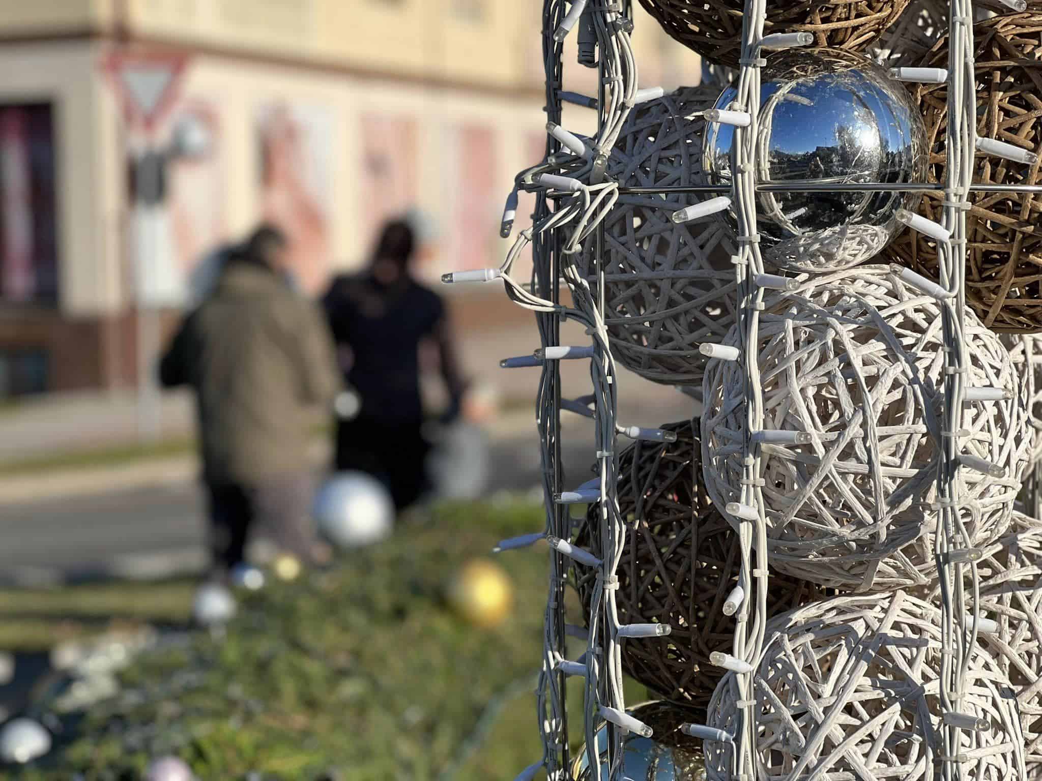 V krožišču pri južnem vstopu v mestno središče v vsej svoji lepoti žari adventni venček, ki so ga okrasili dijaki in dijakinje Šole za hortikulturo in vizualne umetnosti iz Celja.