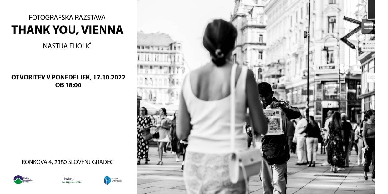 »Thank you, Vienna« je fotografska razstava s pretežno ulične fotografije in ostalih momentov, ujetih skozi oko fotografinje Nastije Fijolič.