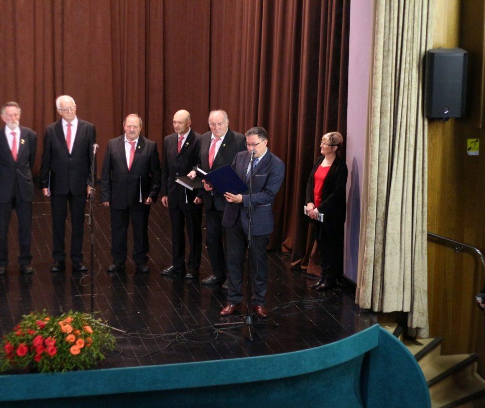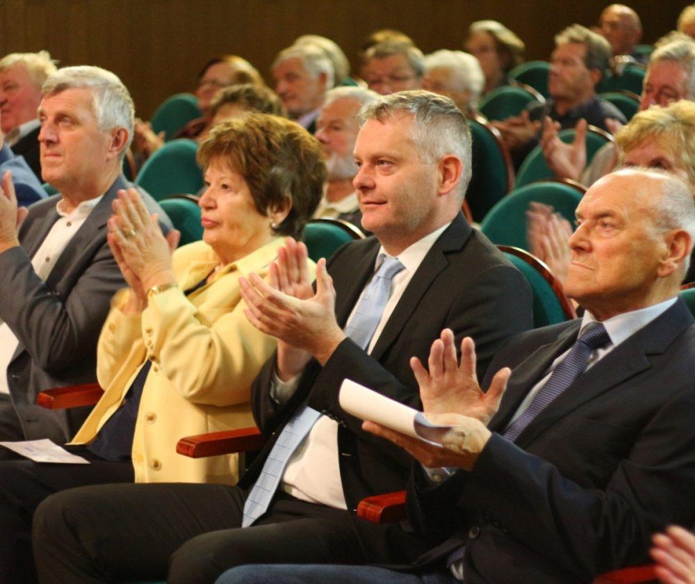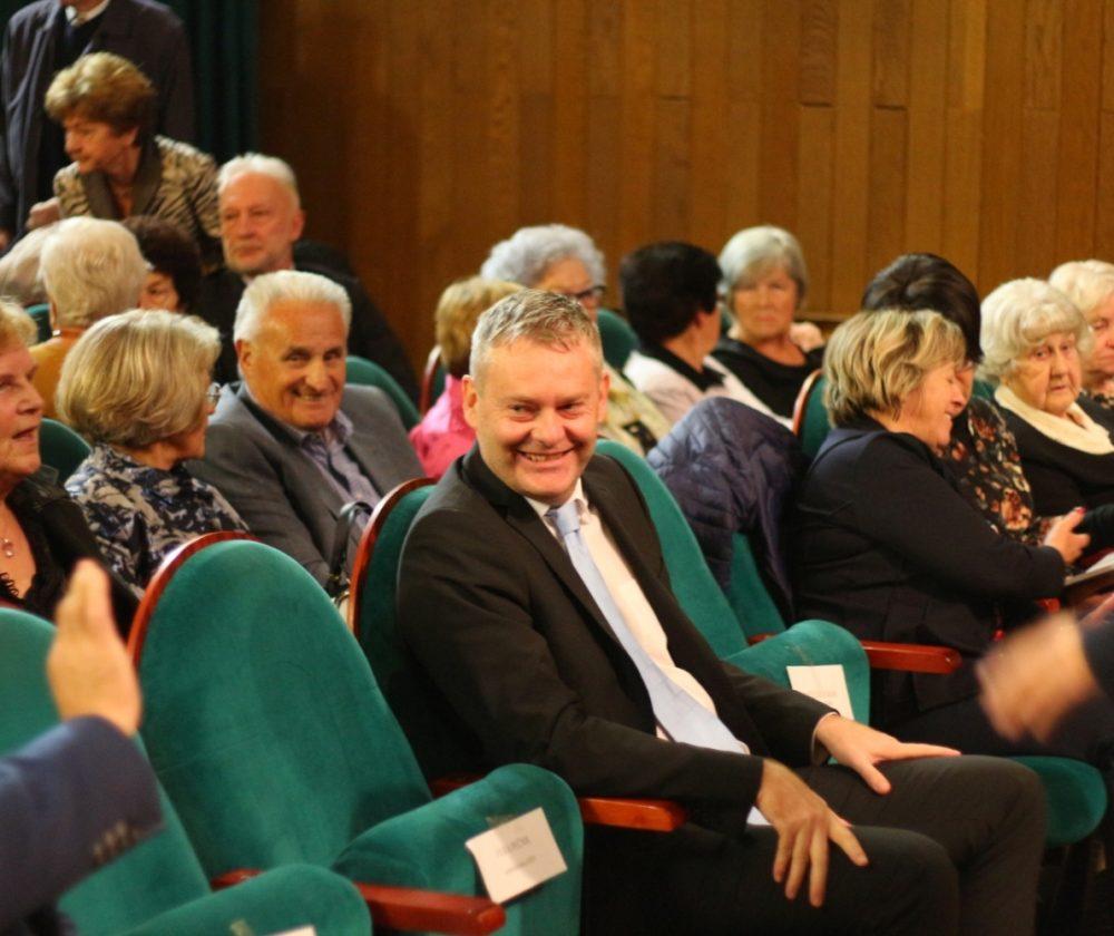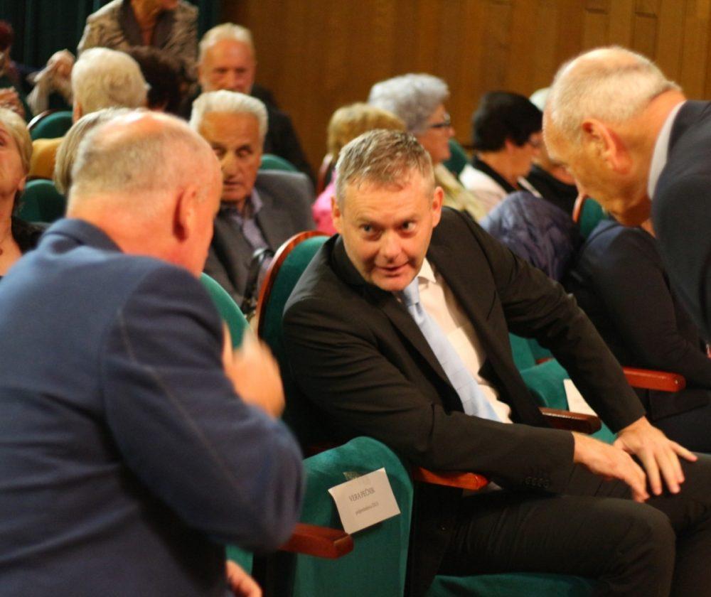 Prisotne so nagovorili gostitelj dogodka, predsednik DU Slovenj Gradec, gospod Janez Gologranca, gospod Tilen Klugler, župan MO Slovenj Gradec, podpredsednica Zveze društev upokojencev Slovenije, gospa Vera Pečnik in gospod Željko Kljajić, predsednik Koroške pokrajinske zveze društev upokojencev. Čestitke ob jubileju pa je društvu poslal tudi poslanec v DZ Jože Lenart, ki pa je bil žal odsoten.