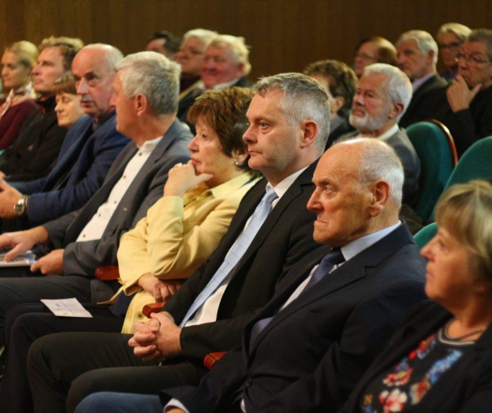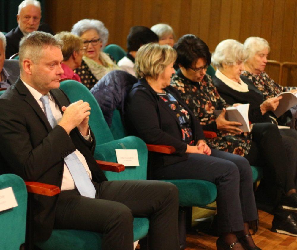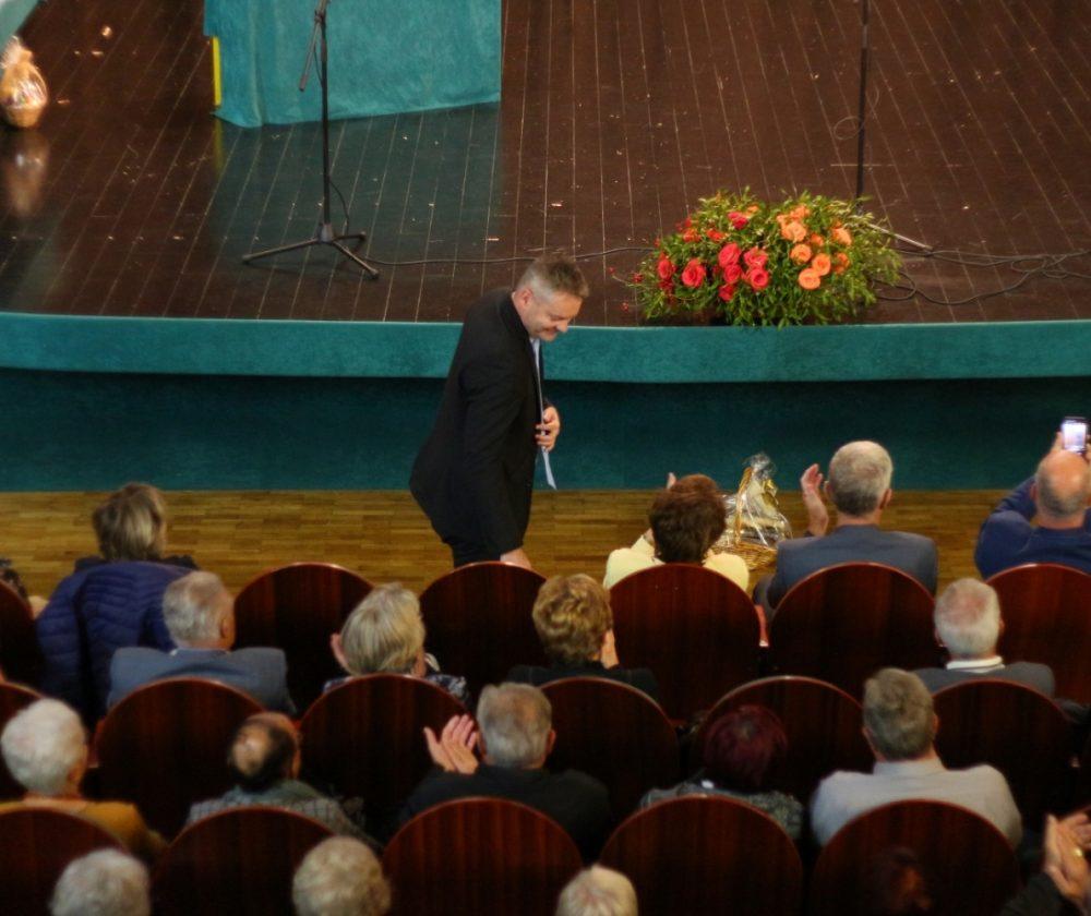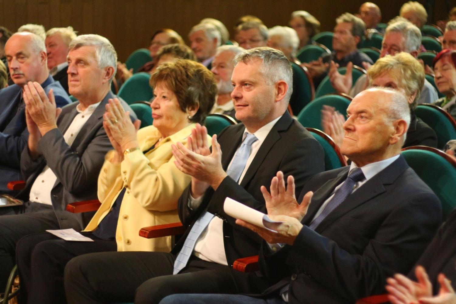 Prisotne so nagovorili gostitelj dogodka, predsednik DU Slovenj Gradec, gospod Janez Gologranca, gospod Tilen Klugler, župan MO Slovenj Gradec, podpredsednica Zveze društev upokojencev Slovenije, gospa Vera Pečnik in gospod Željko Kljajić, predsednik Koroške pokrajinske zveze društev upokojencev. Čestitke ob jubileju pa je društvu poslal tudi poslanec v DZ Jože Lenart, ki pa je bil žal odsoten.