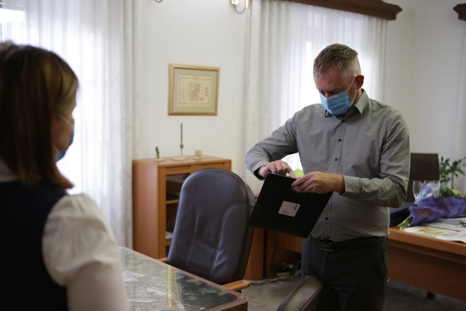 Anito Kac in Jadranko Smiljić, ki sta 6. februarja v Slovenj Gradcu začeli maraton neprestanega kvačkanja za vpis v Guinnessovo knjigo rekordov, zaključili pa 7. februarja, je danes v Slovenj Gradcu sprejel župan Tilen Klugler. Na dogodku sta se mu pridružila tudi podžupanja Martina Šisernik in podžupan dr. Peter Pungartnik.