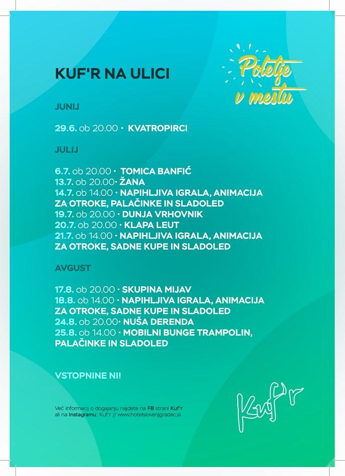 Tako bodo za popestritev vročih poletnih dni in noči med drugim poskrbeli tudi v Piceriji in pivnici Kuf’r, kjer bodo v naslednjih dveh mesecih s pestrim programom in dogajanjem poskrbeli za vse generacije.