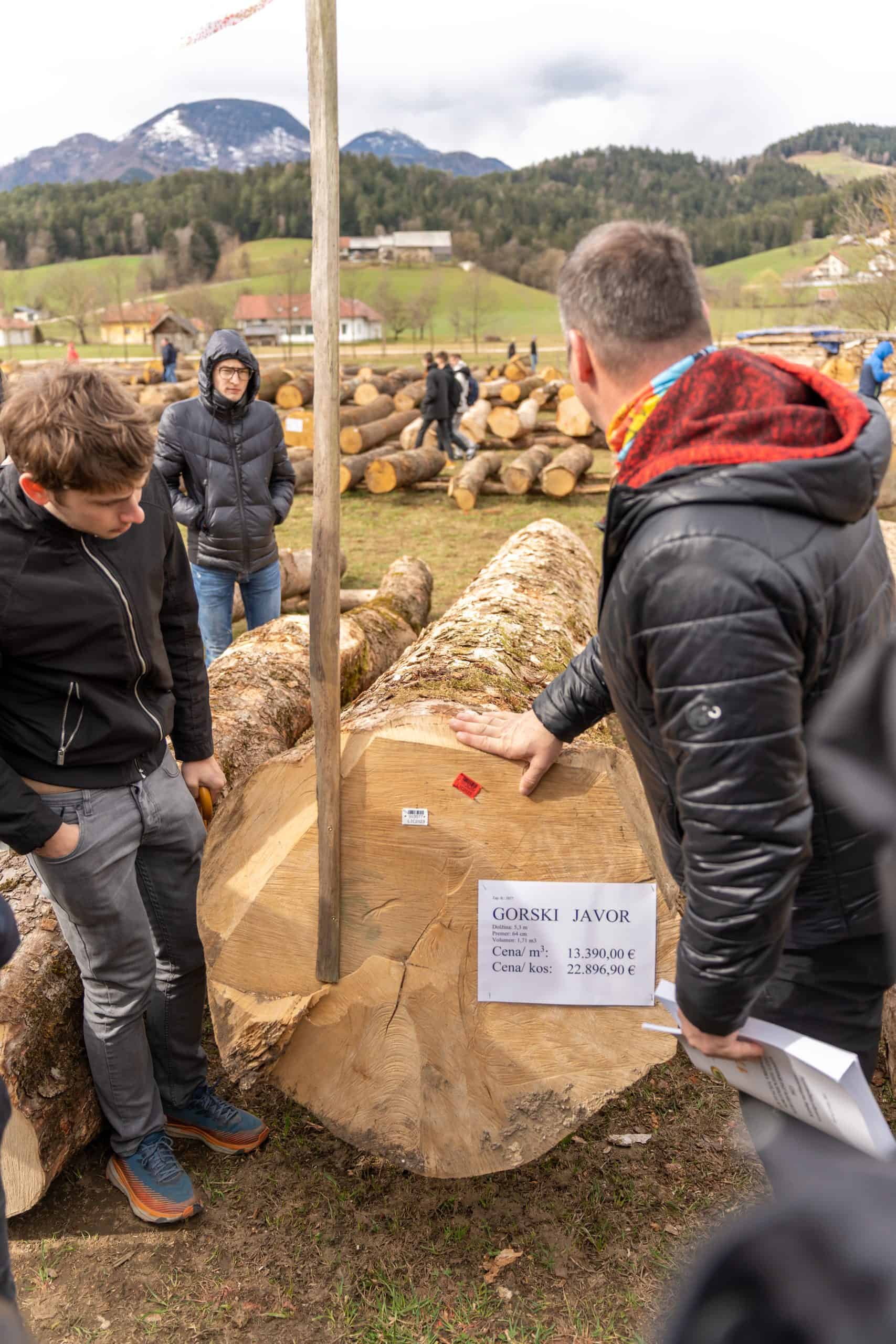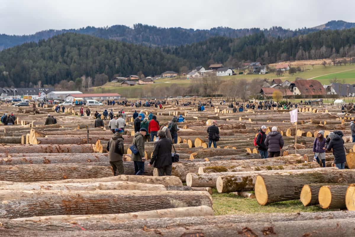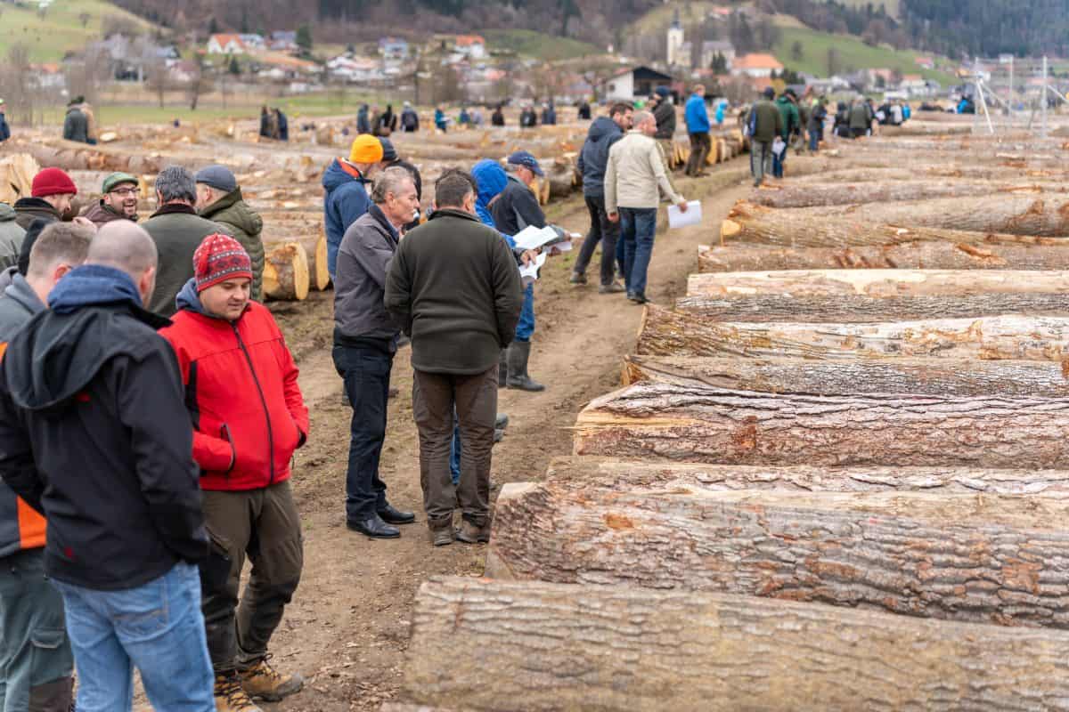 Na lokaciji 17. licitacije vrednejših lesnih sortimentov na Podgorski cesti v Slovenj Gradcu, v organizaciji Društva lastnikov gozdov Mislinjske doline, v sodelovanju z Zvezo lastnikov gozdov Slovenije in Zavodom za gozdove Slovenije, je danes, 15. marca 2023 ob 10. uri, potekal dan odprtih vrat in razglasitev rezultatov licitacije. Letošnje leto je na licitacijo prispelo 9.566 hlodov v lasti 1019 lastnikov gozdov, ki so skupaj merili rekordnih 9.720,20 kubičnih metrov. Med zbranimi hlodi je bilo veliko visokokakovostnih hlodov javorjev rebrašev, ki so jih lastniki pripeljati tudi iz Posavja, iz krajev blizu Zagorja in Trbovelj, sicer pa se je na licitaciji zbrala hlodovina iz celotne Slovenije.