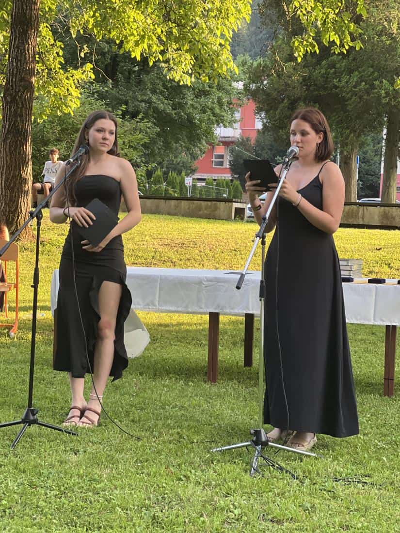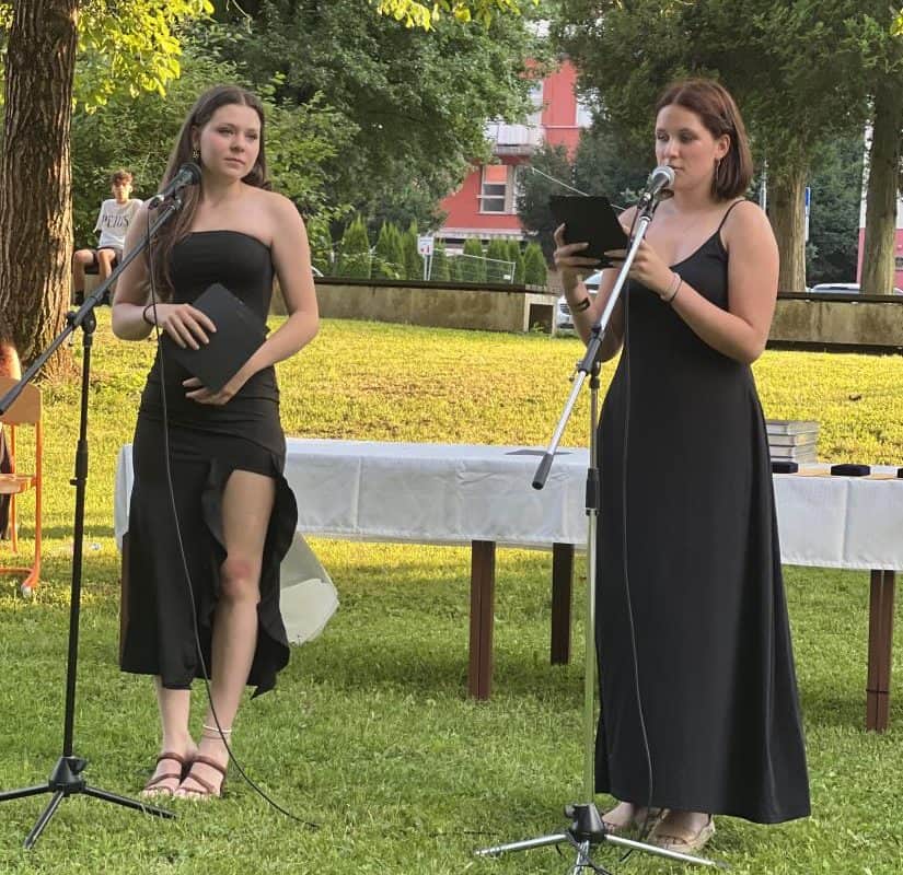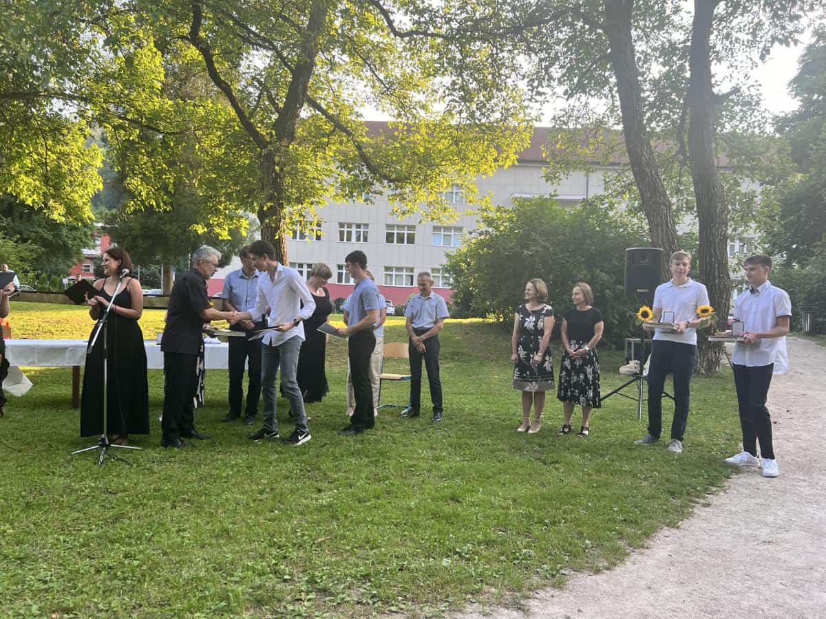 Razredniki Manuela Tkalec, Katja Stopar, Simona Rejec Merkač, Simona Ledinek in Matjaž Burjak so se ganljivo poslovili še z zadnjim dejanjem – podelitvijo spričeval in maturantke in maturanti so se podali najdaljšim počitnicam naproti.