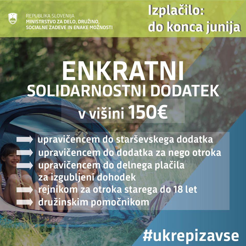 150 evrov bodo tako prejeli tudi upravičenci do starševskega dodatka, osebee, ki negujejo otroka, upravičenci do delnega plačila za izgubljeni dohodek, rejniki za otroka starega do 18 let in družinski pomočniki.
