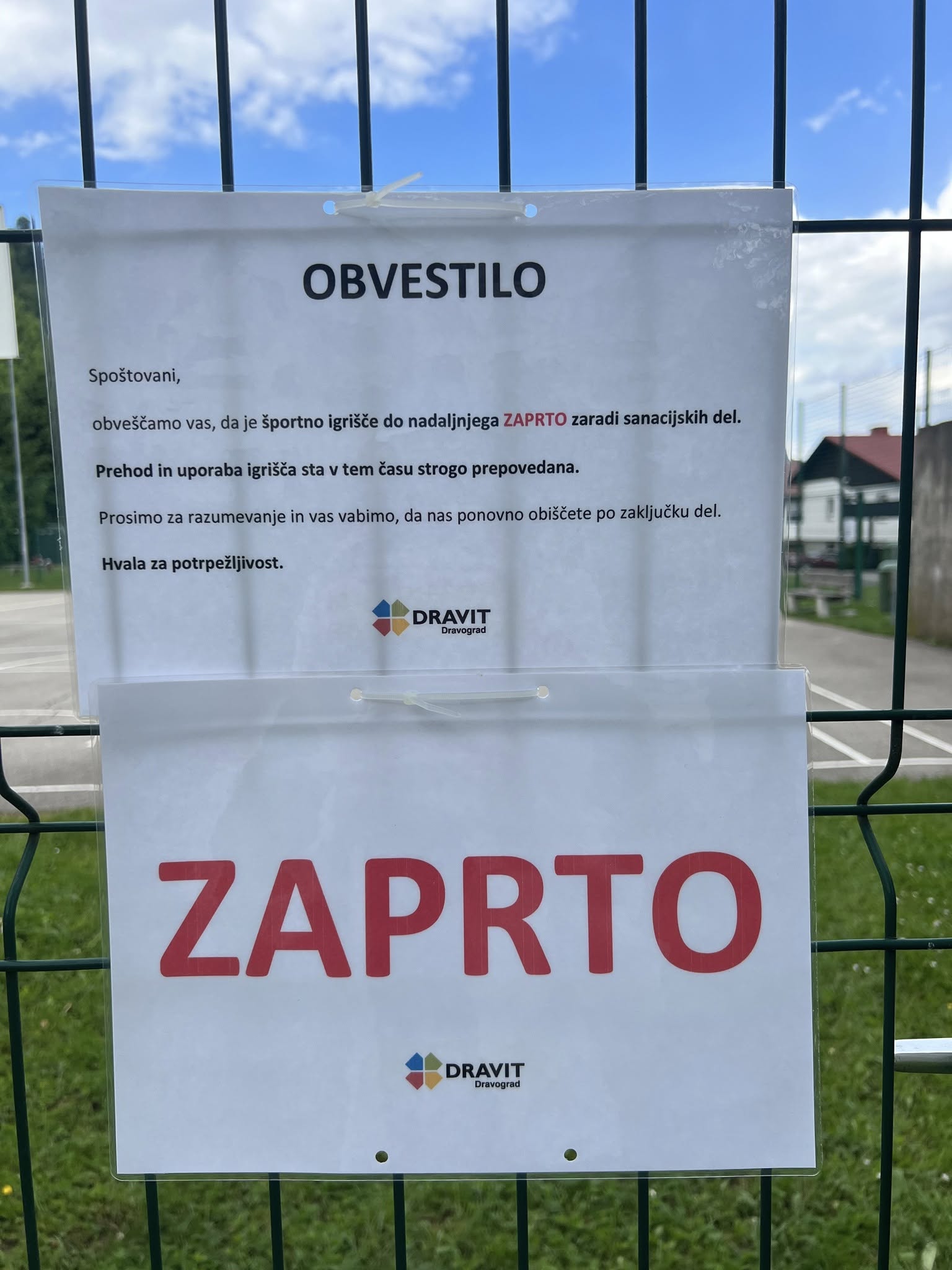 Dravit Dravograd obvešča vse občanke in občane, da je športno igrišče na Robindvoru zaradi nujnih sanacijskih del do nadaljnjega zaprto.