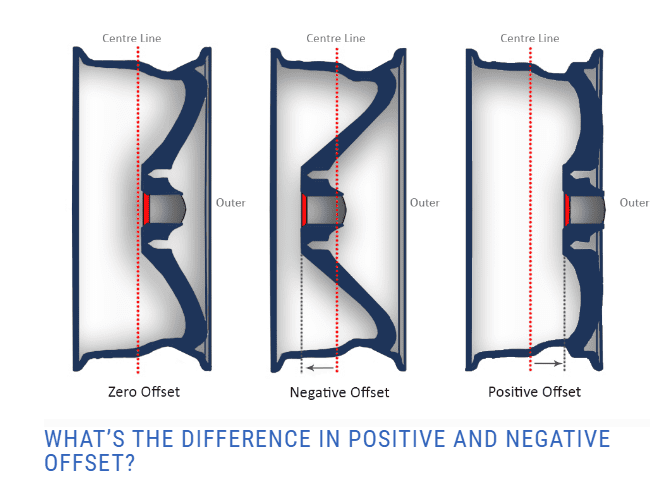Pozitivna je takrat, ko je naležna površina odmaknjena bolj proti zunanji strani. Negativen ET pa je takrat, ko je naležna površina umaknjena bolj proti notranjosti platišča.