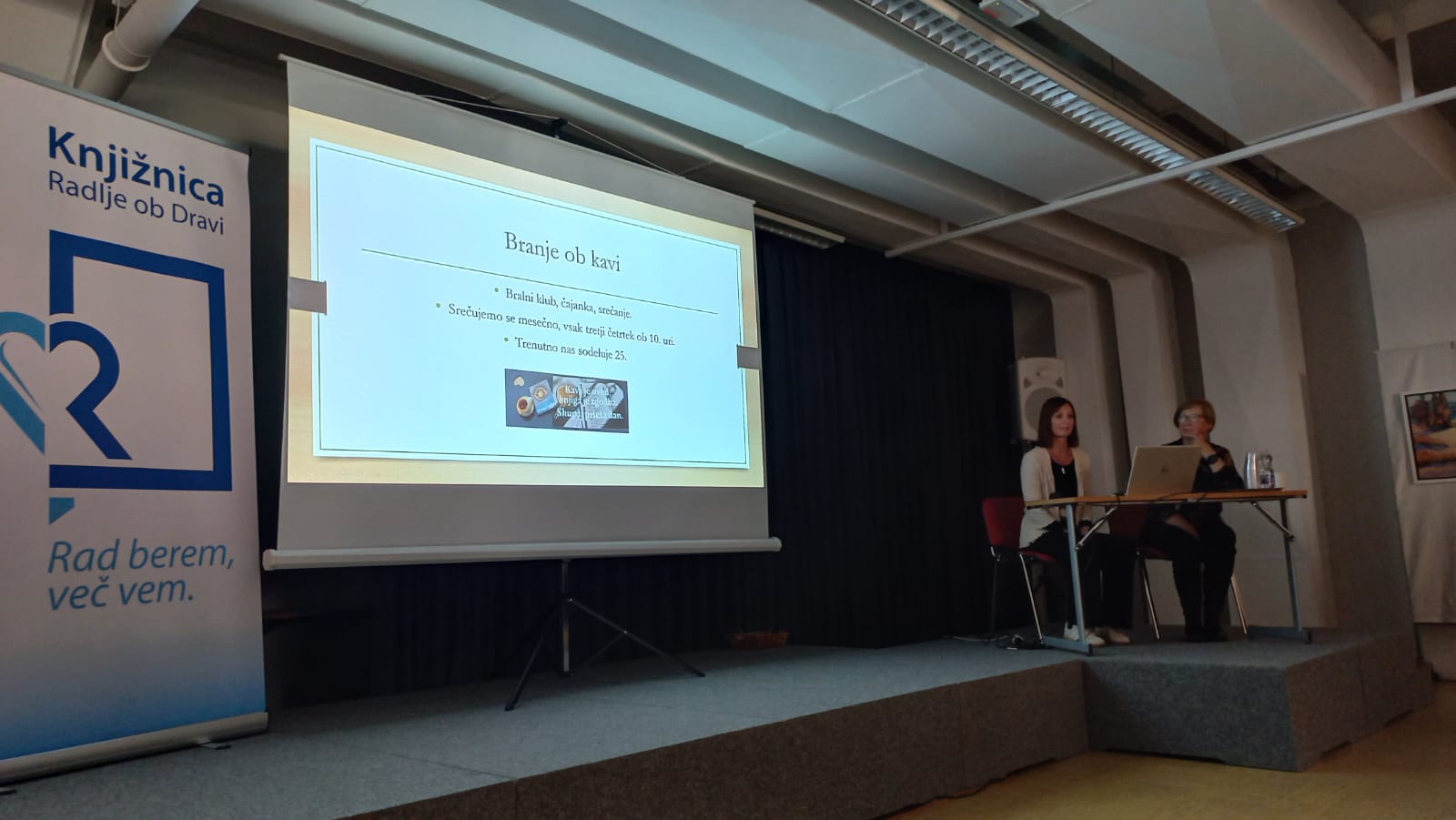 Knjižničarki iz Slovenj Gradca sta predstavili, kako pri njih potekajo bralna srečanja s posebnimi ciljnimi skupinami, knjižničarka in upokojena profesorica iz Dravograda pa sta prikazali, kako se pri njih srečujejo na »branju ob kavi« .