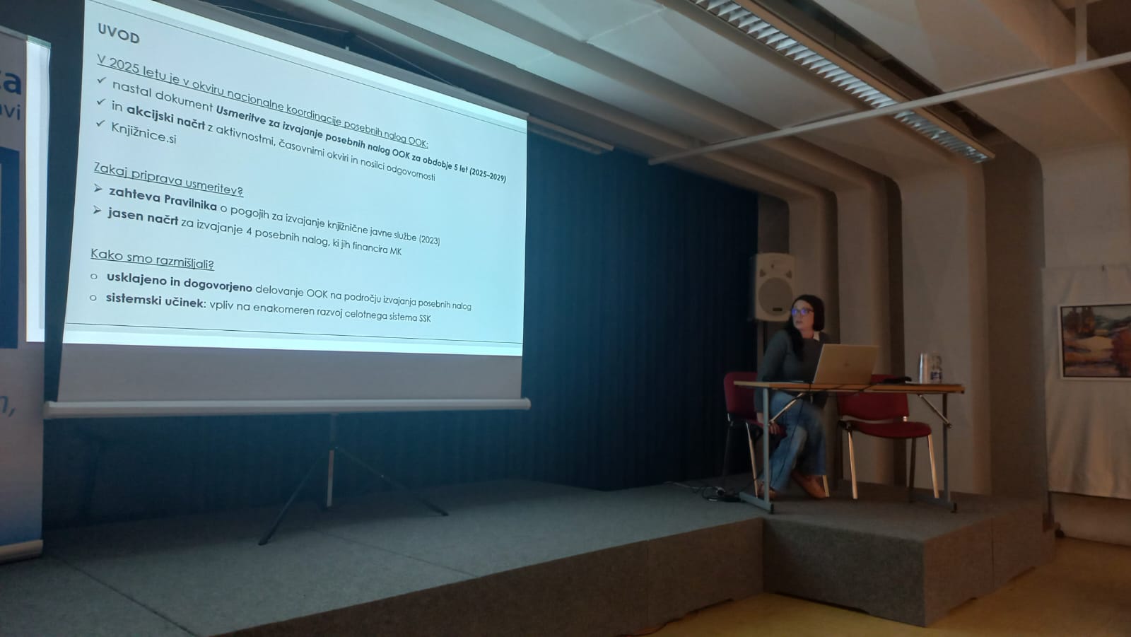 - Polonca Kavčič, nacionalna koordinatorka posebnih nalog osrednjih območnih knjižnic (OOK), je predstavila Usmeritve za izvajanje posebnih nalog OOK za obdobje 2025–2029 ter Akcijski načrt.