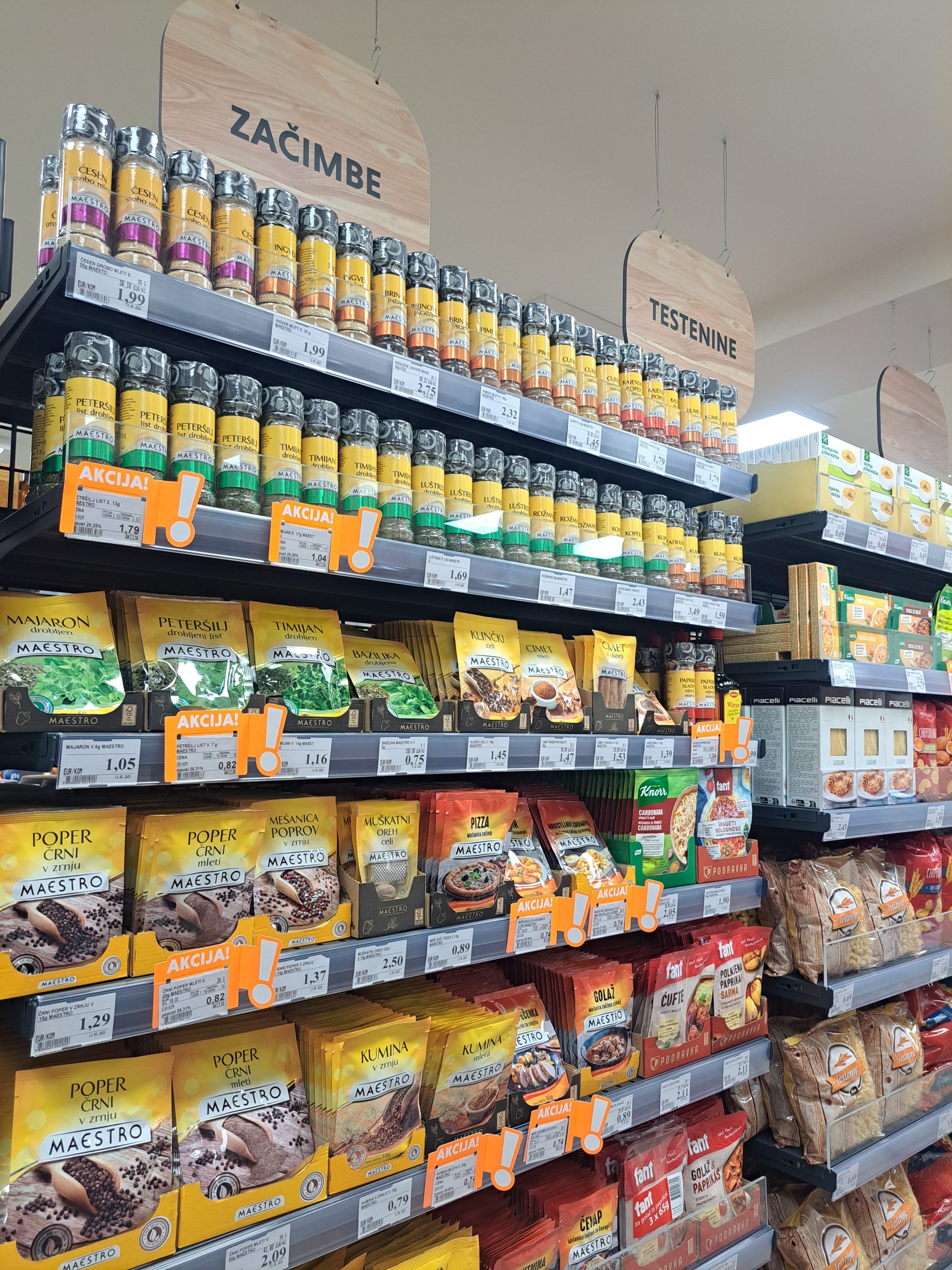 Na policah trgovine vas pričakajo sveža zelenjava in sadje, dišeče pekovske dobrote, mesni in mlečni izdelki ter osnovna kozmetika in gospodinjski izdelki. Vse, kar družina potrebuje – pri roki, brez hitenja v večje nakupovalne centre.