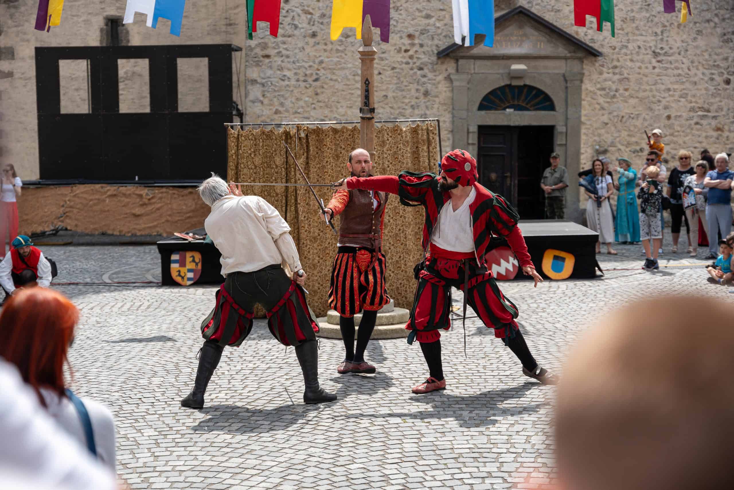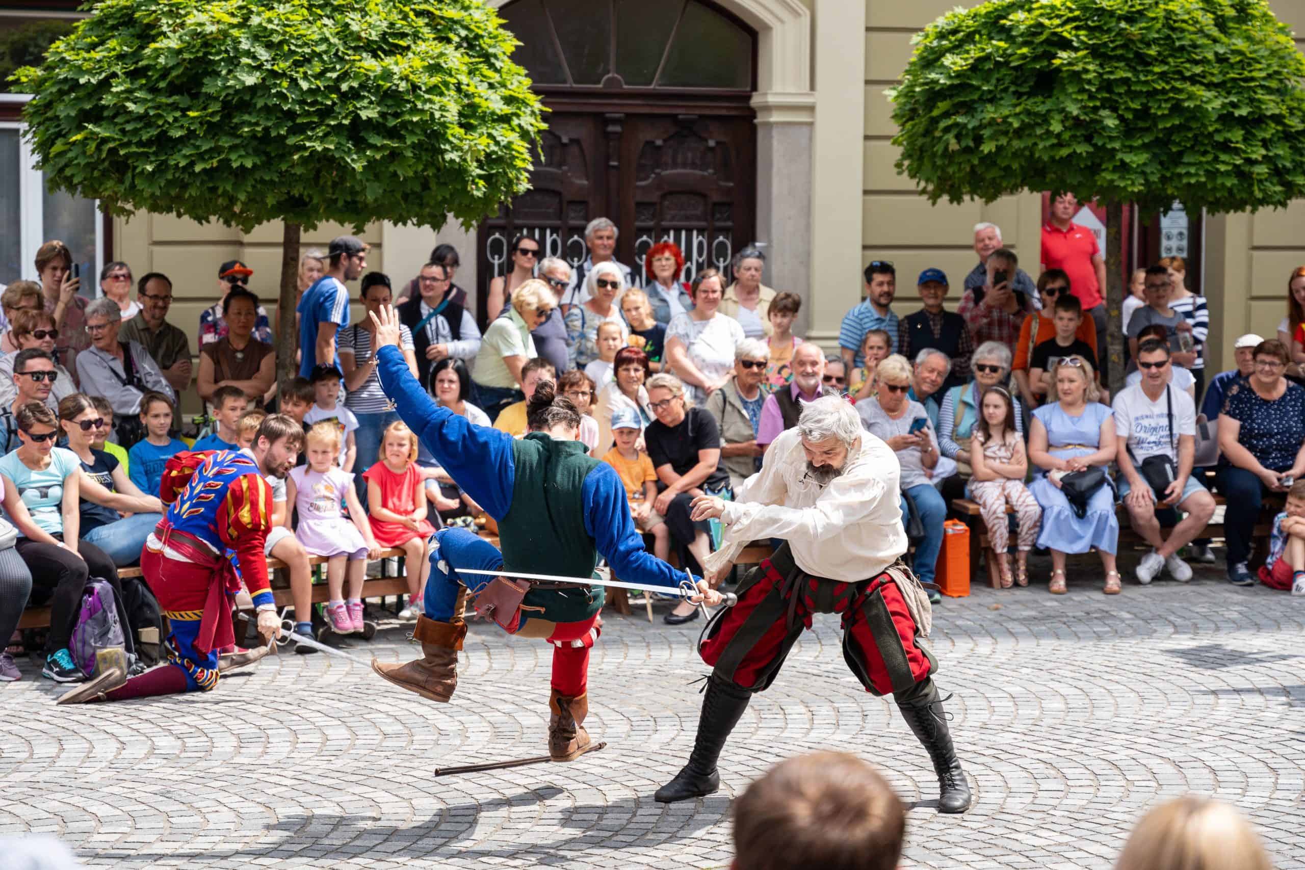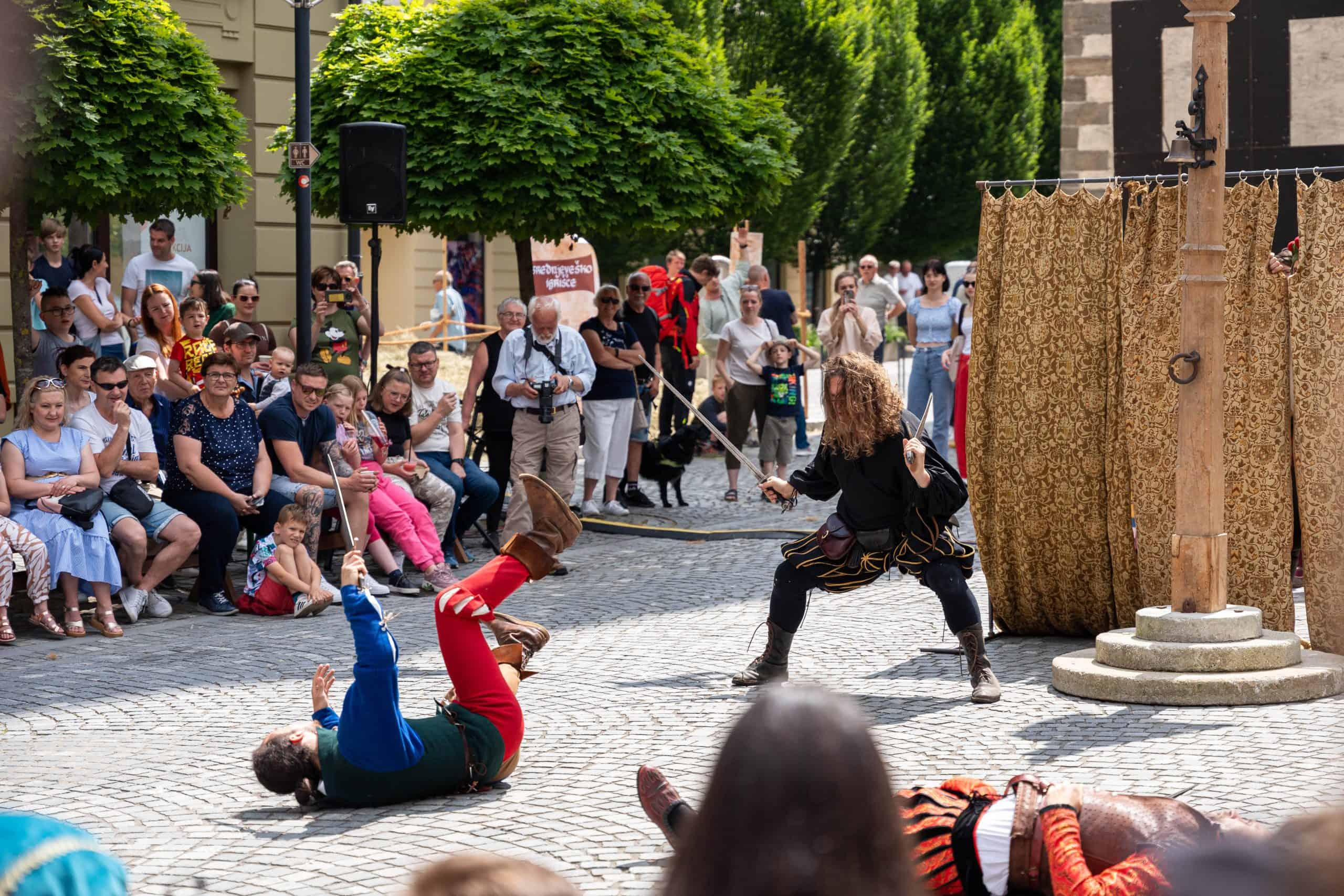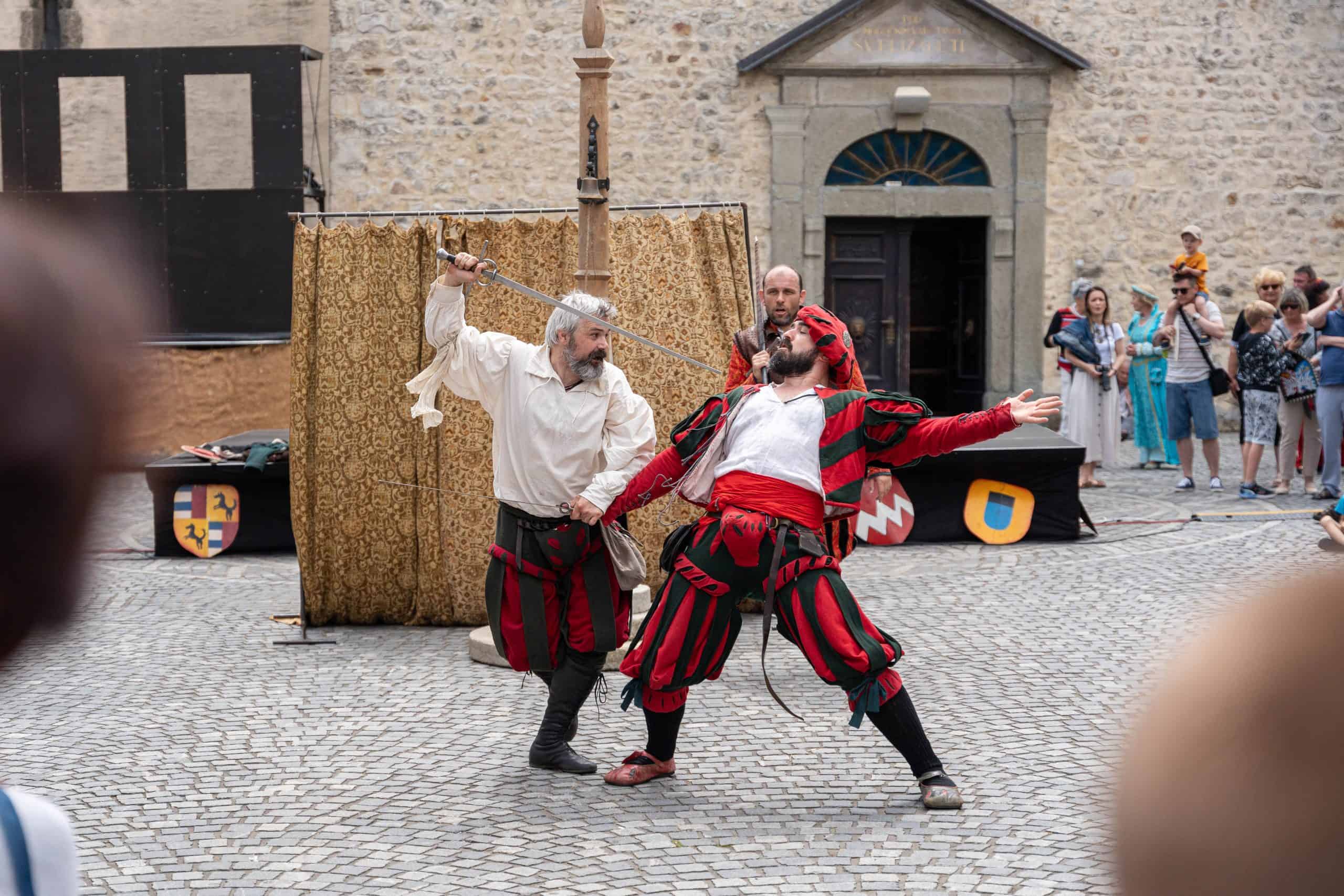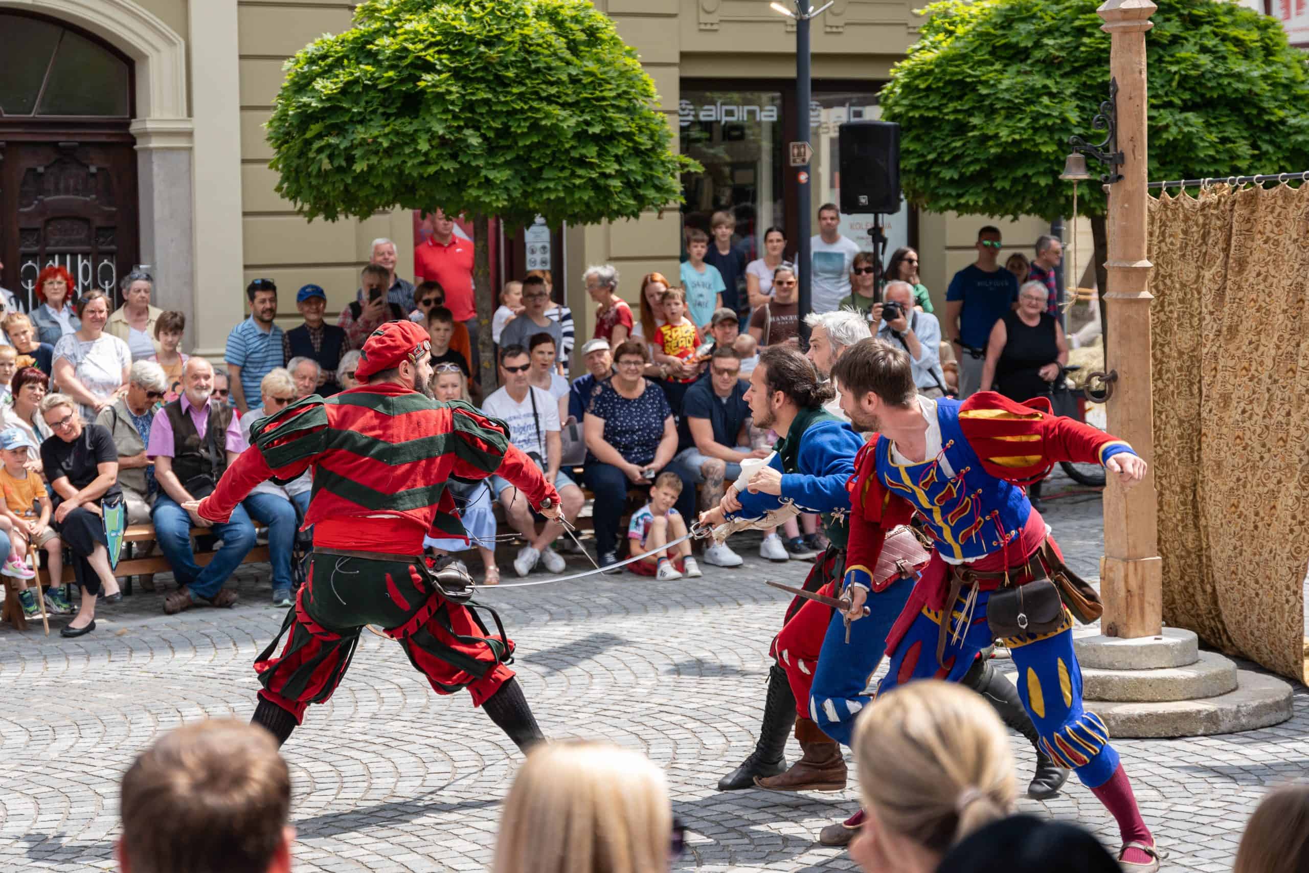Slovenj Gradec so zavzele viteške skupine iz tujine, ki bodo uprizarjajo neizprosne viteške boje ob katerih se zaiskri kot nekoč. Prisotna je tudi atraktivna akrobatska skupina Dunkin Devils, zgodil se je sokolji šov, cirkuška predstava Camila Acoste iz Kolumbije, smo v pričakovanju ognjenega šova s trebušnimi plesalkami, boju za Slovenjgraški medenjak in še številnim zanimivim srednjeveškim doživetjem. Ob 16. uri smo v pričakovanju sekanja največjega bio bonbona vseh časov. Sledilo bo iskanje skritega slovenjgraškega zaklada, ki bo pravo doživetje za otroke.