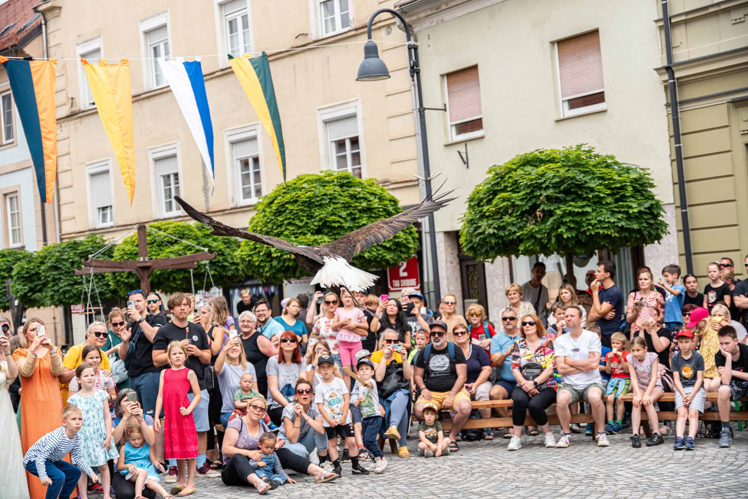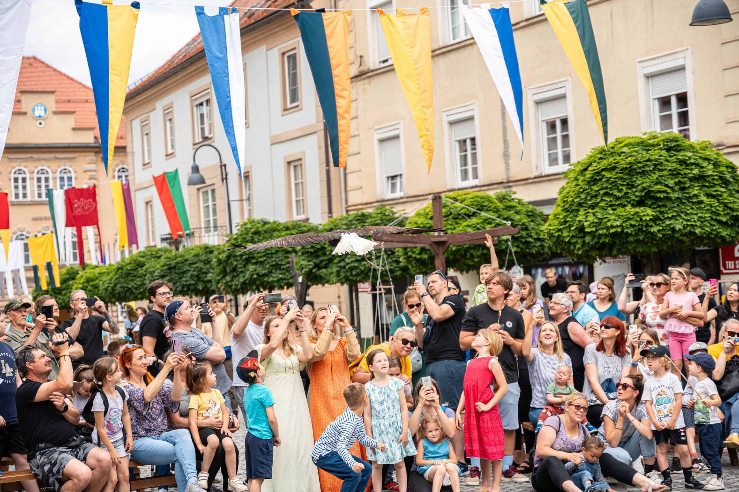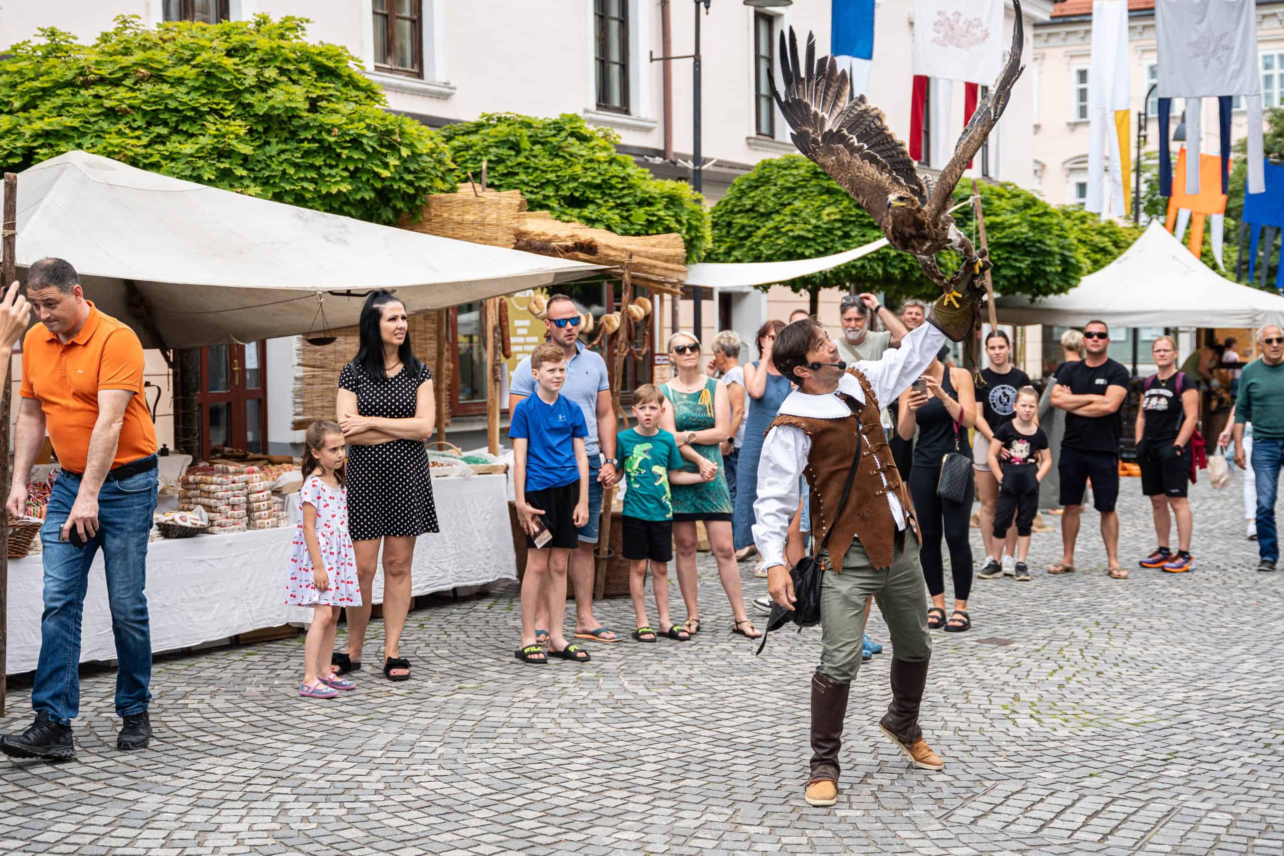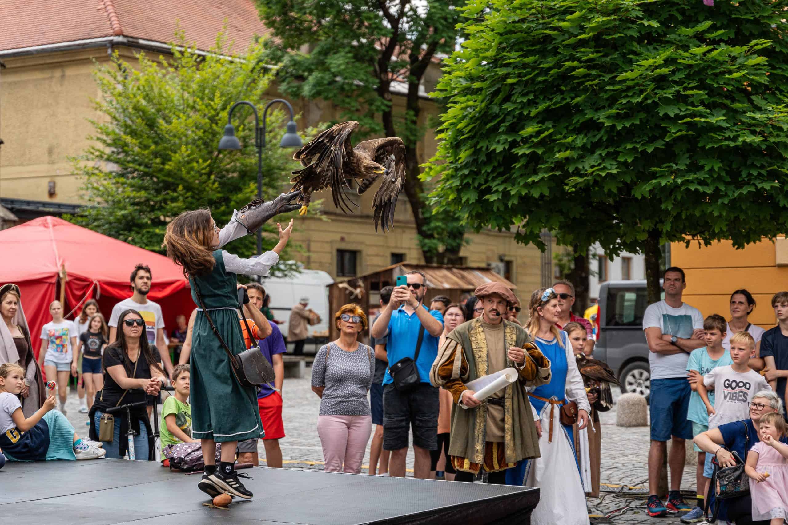 V Mestnem jedru Slovenj Gradec poteka vse od jutra že 10. Srednjeveški preludij, ki je pravi spektakel in vsako leto privablja večje število ljudi iz vseh koncev. Bili smo priča svečani povorki vseh nastopajočih ter slavnostni otvoritvi s spustom slovenjegraške zastave in golobov za mir v svetu. Na prizorišču pri gimnaziji je potekal tudi lokostrelski turnir.