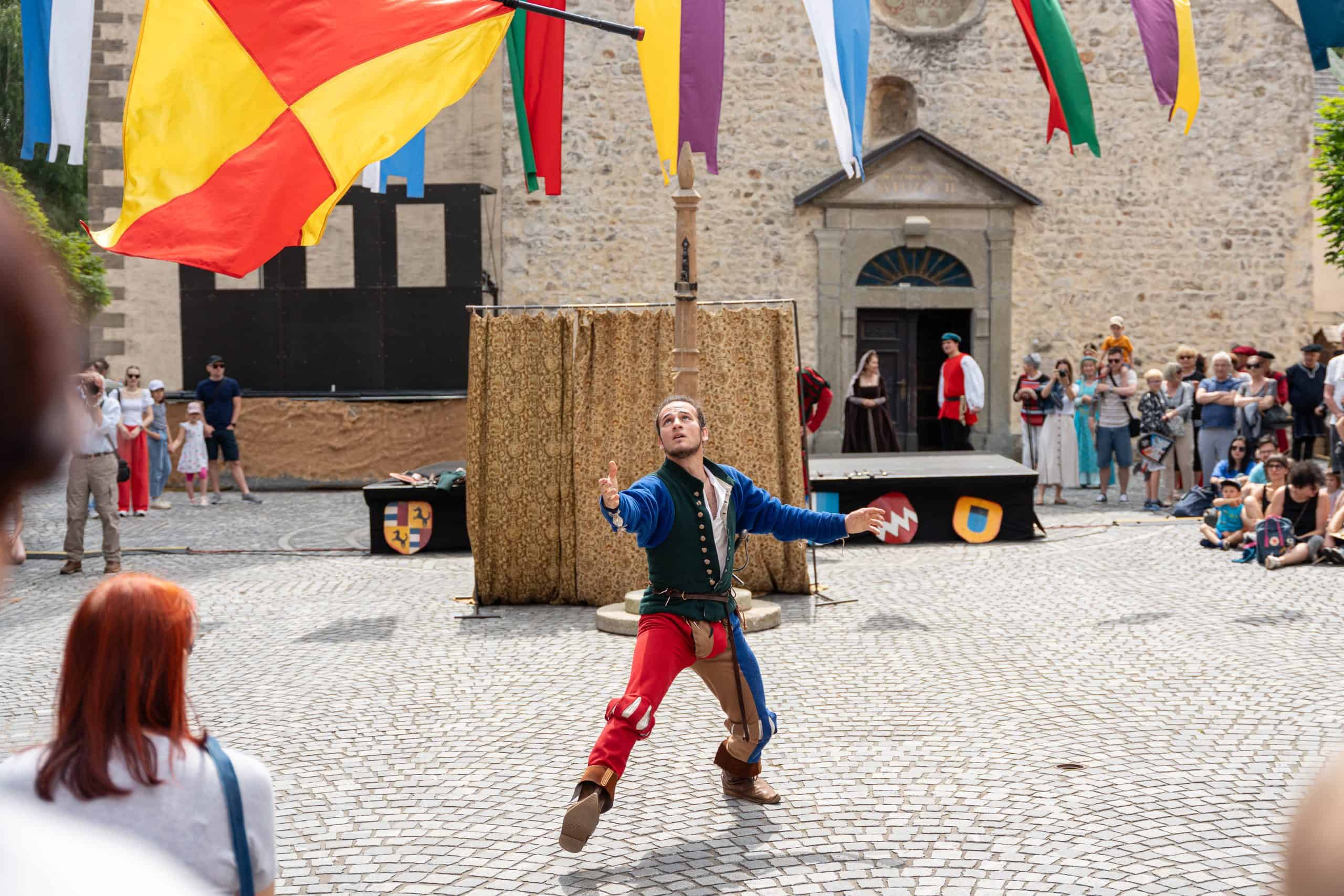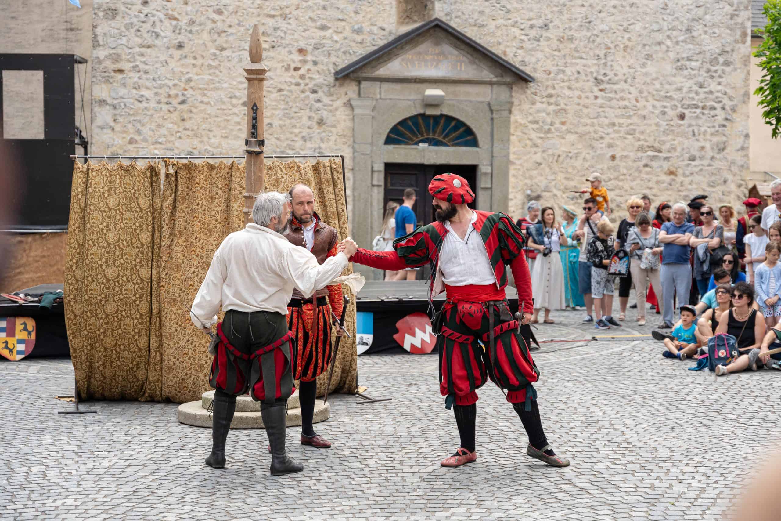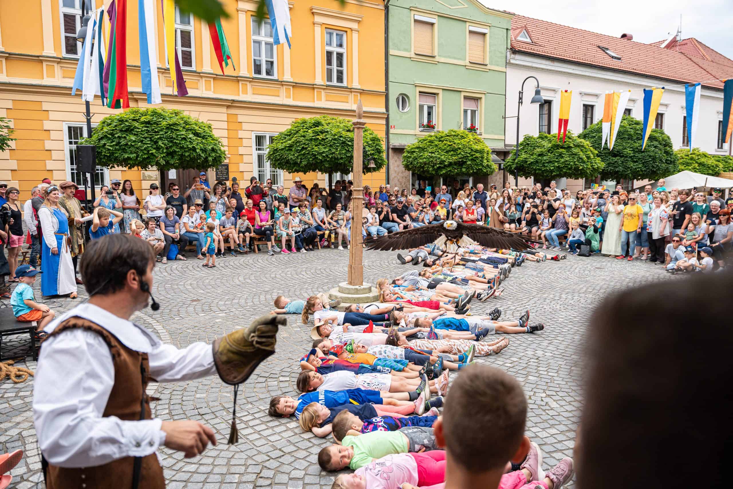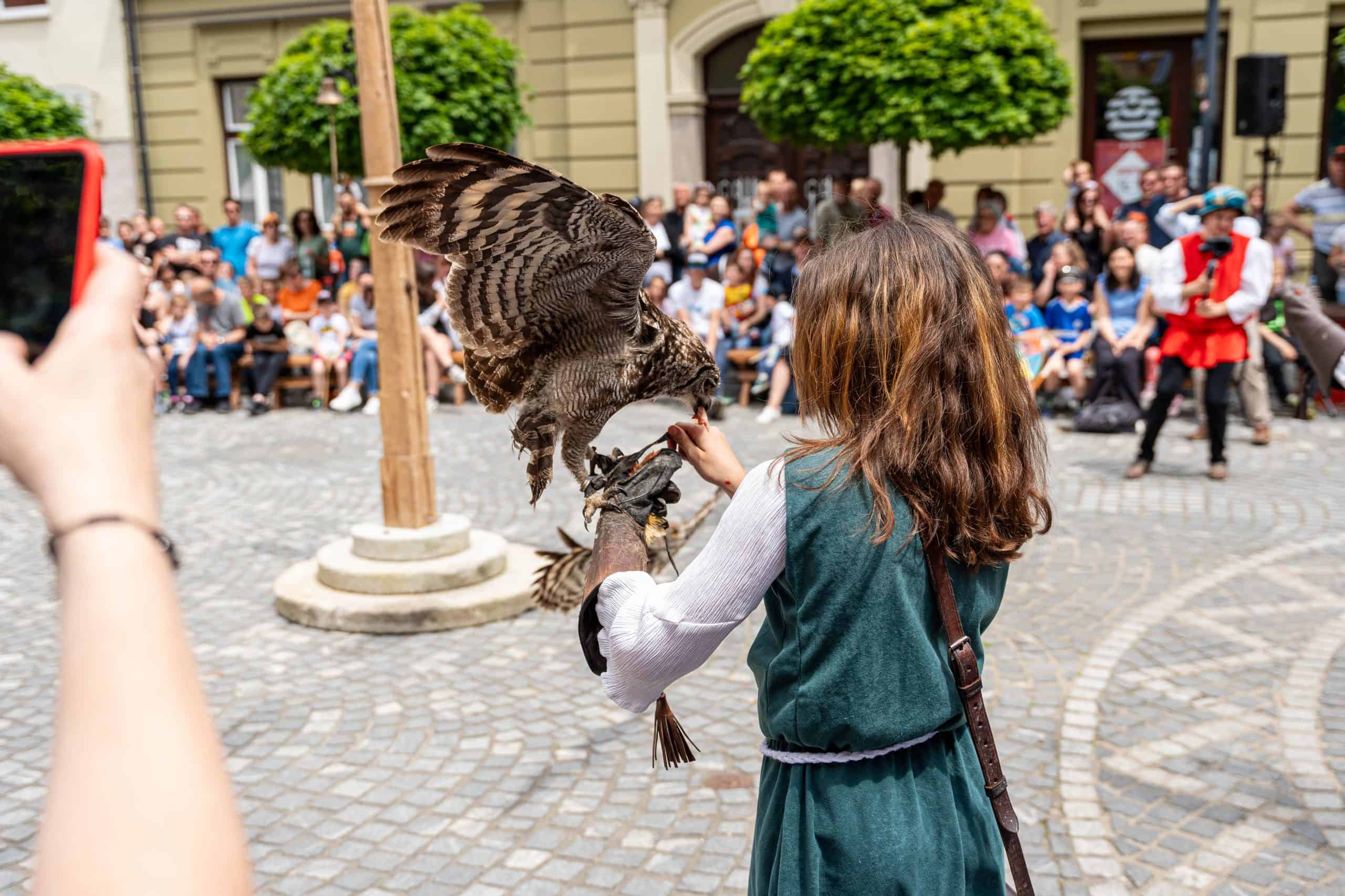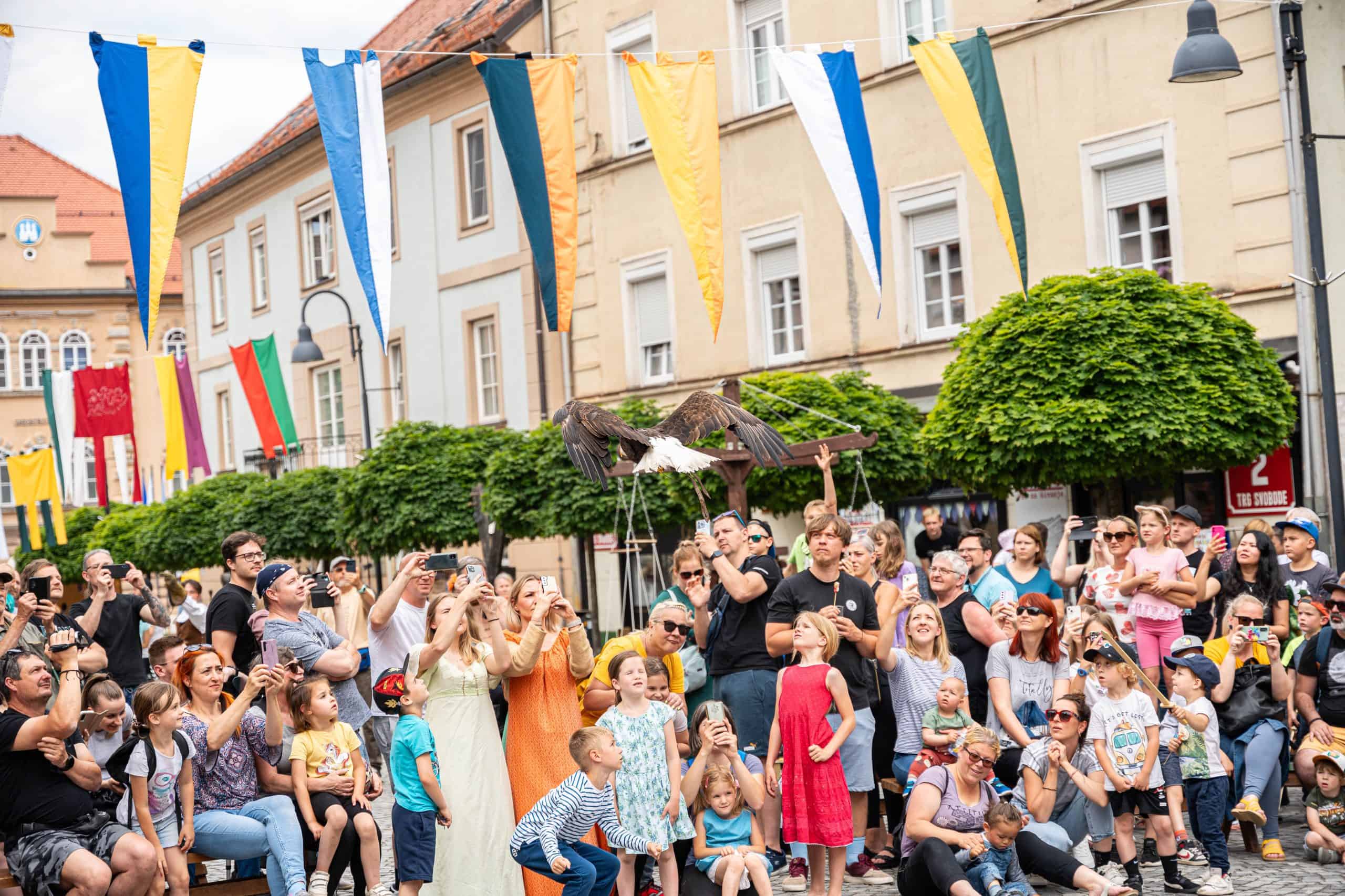 V Mestnem jedru Slovenj Gradec poteka vse od jutra že 10. Srednjeveški preludij, ki je pravi spektakel in vsako leto privablja večje število ljudi iz vseh koncev. Bili smo priča svečani povorki vseh nastopajočih ter slavnostni otvoritvi s spustom slovenjegraške zastave in golobov za mir v svetu. Na prizorišču pri gimnaziji je potekal tudi lokostrelski turnir.