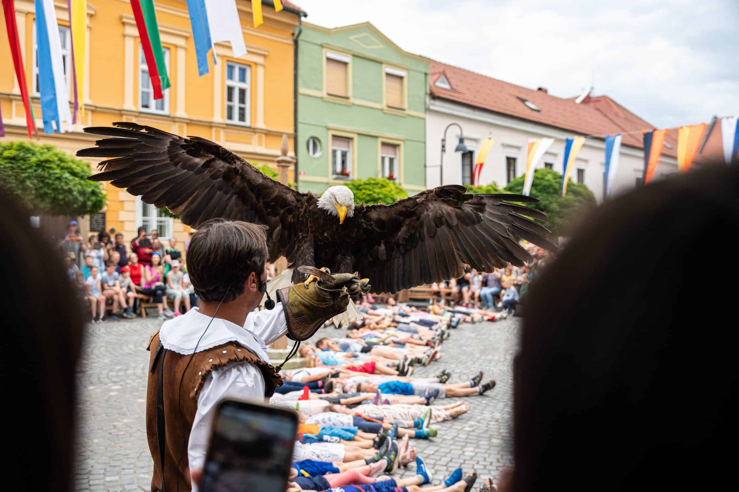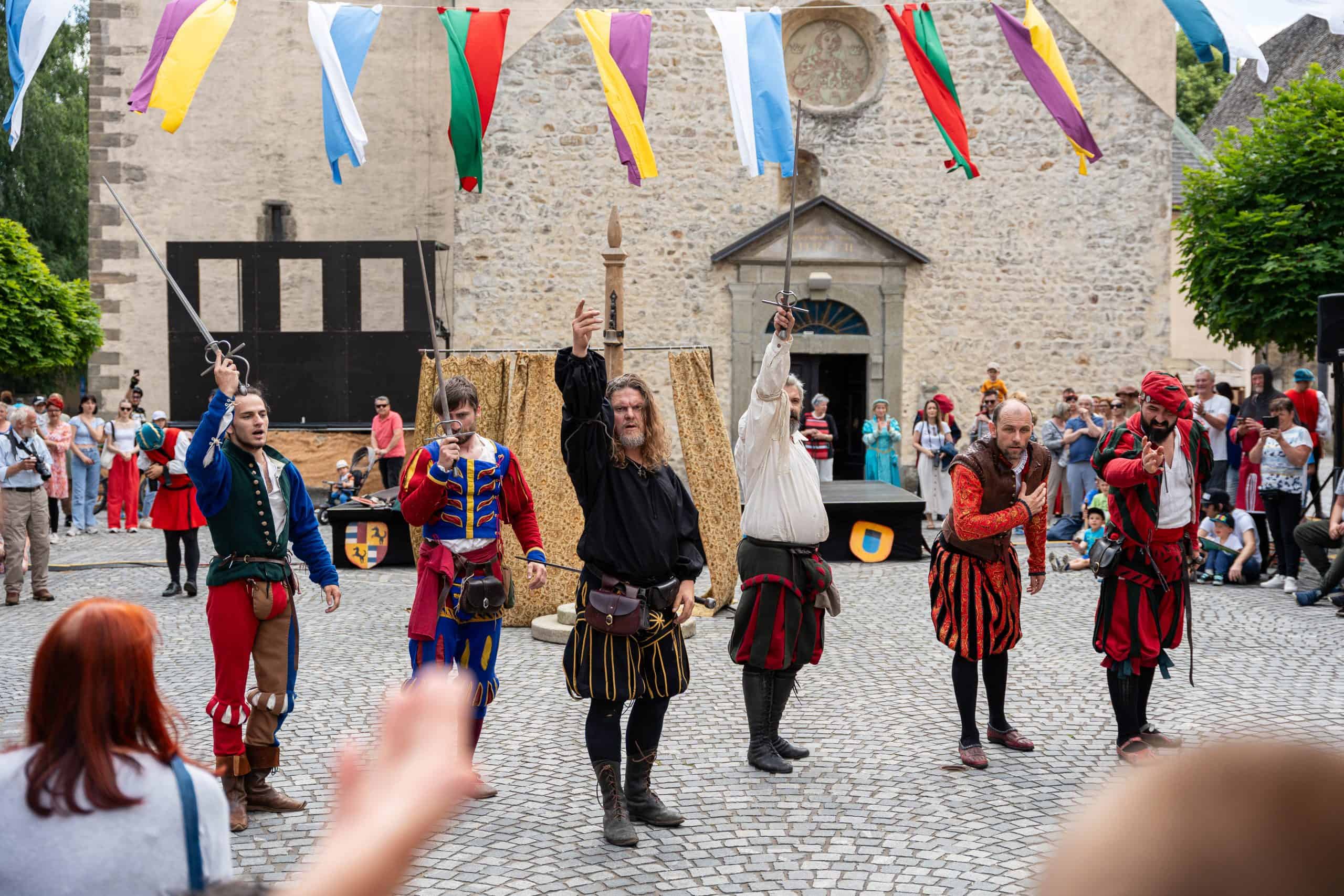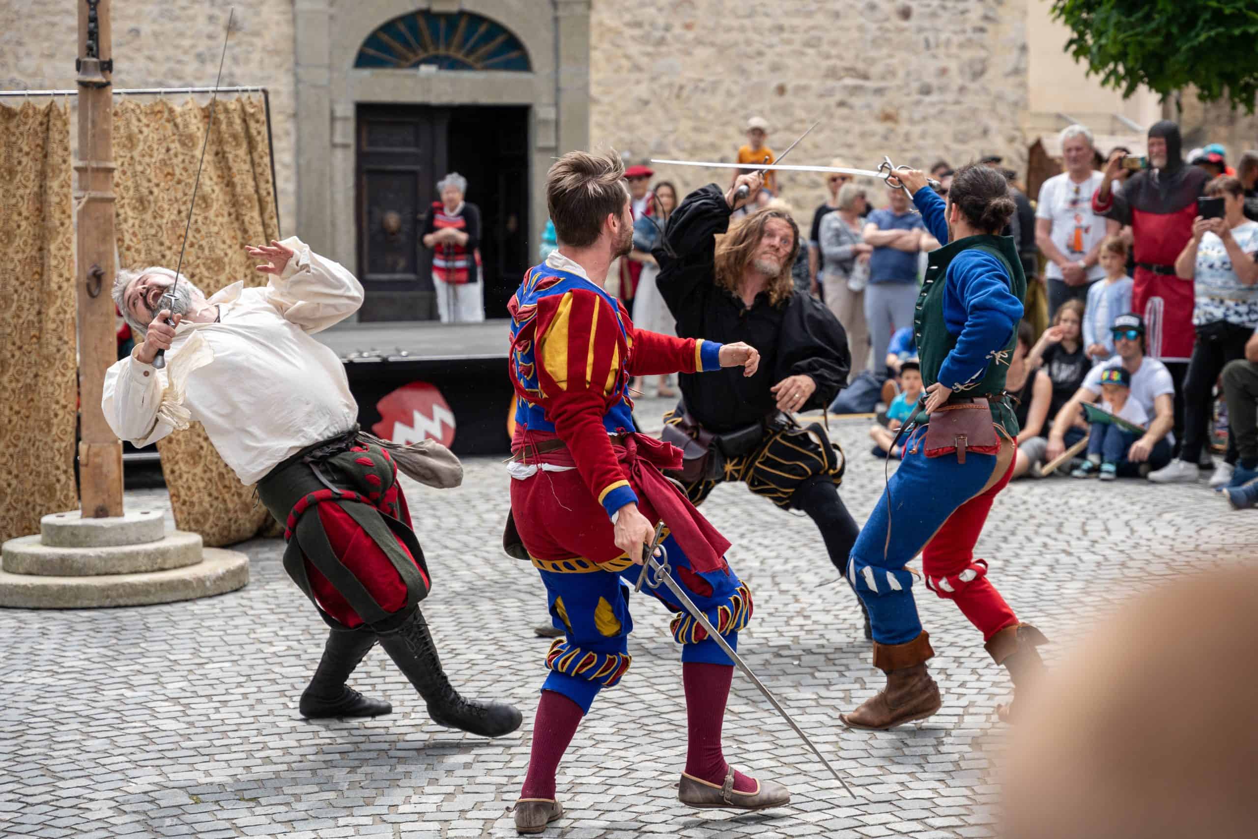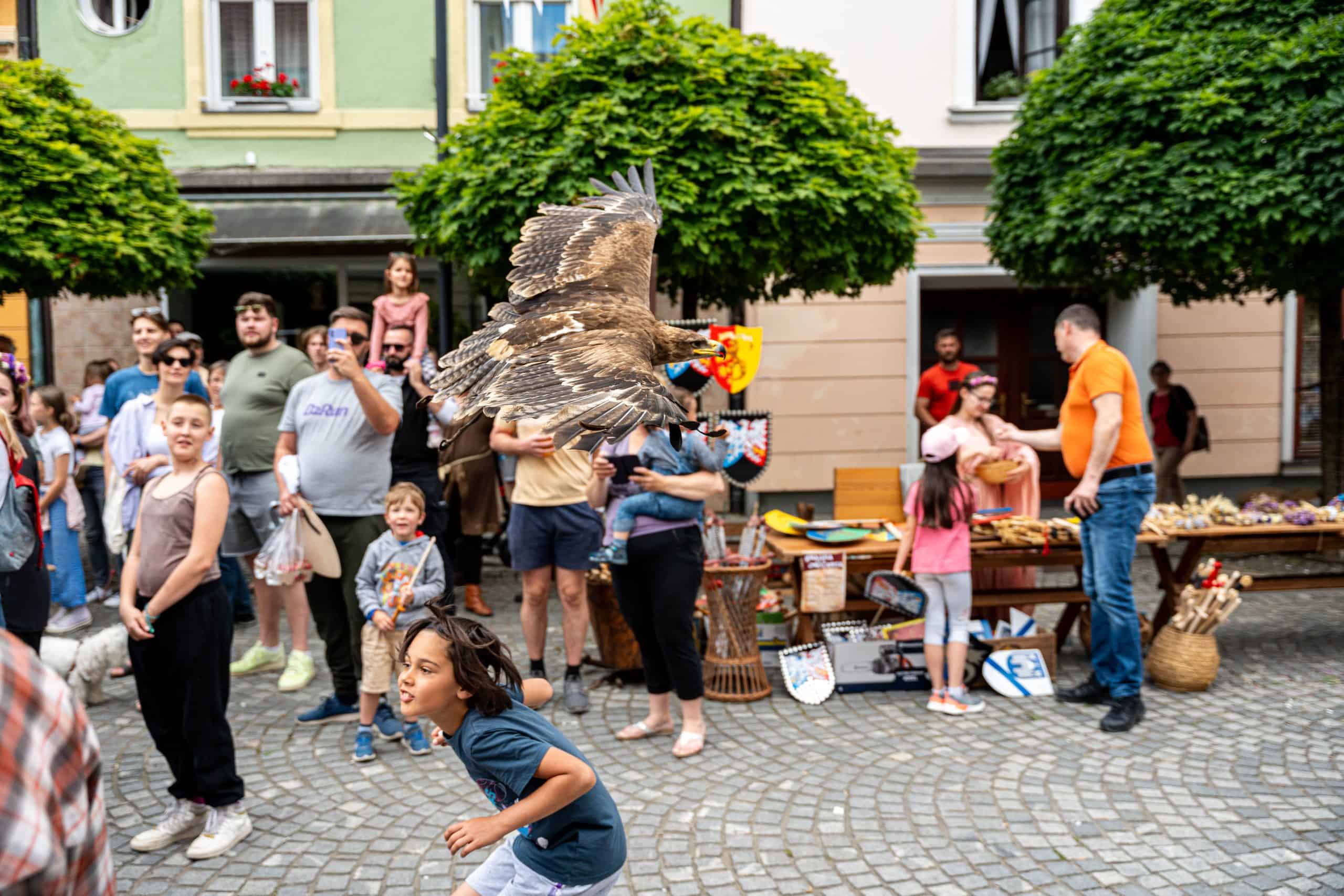 V Mestnem jedru Slovenj Gradec poteka vse od jutra že 10. Srednjeveški preludij, ki je pravi spektakel in vsako leto privablja večje število ljudi iz vseh koncev. Bili smo priča svečani povorki vseh nastopajočih ter slavnostni otvoritvi s spustom slovenjegraške zastave in golobov za mir v svetu. Na prizorišču pri gimnaziji je potekal tudi lokostrelski turnir.