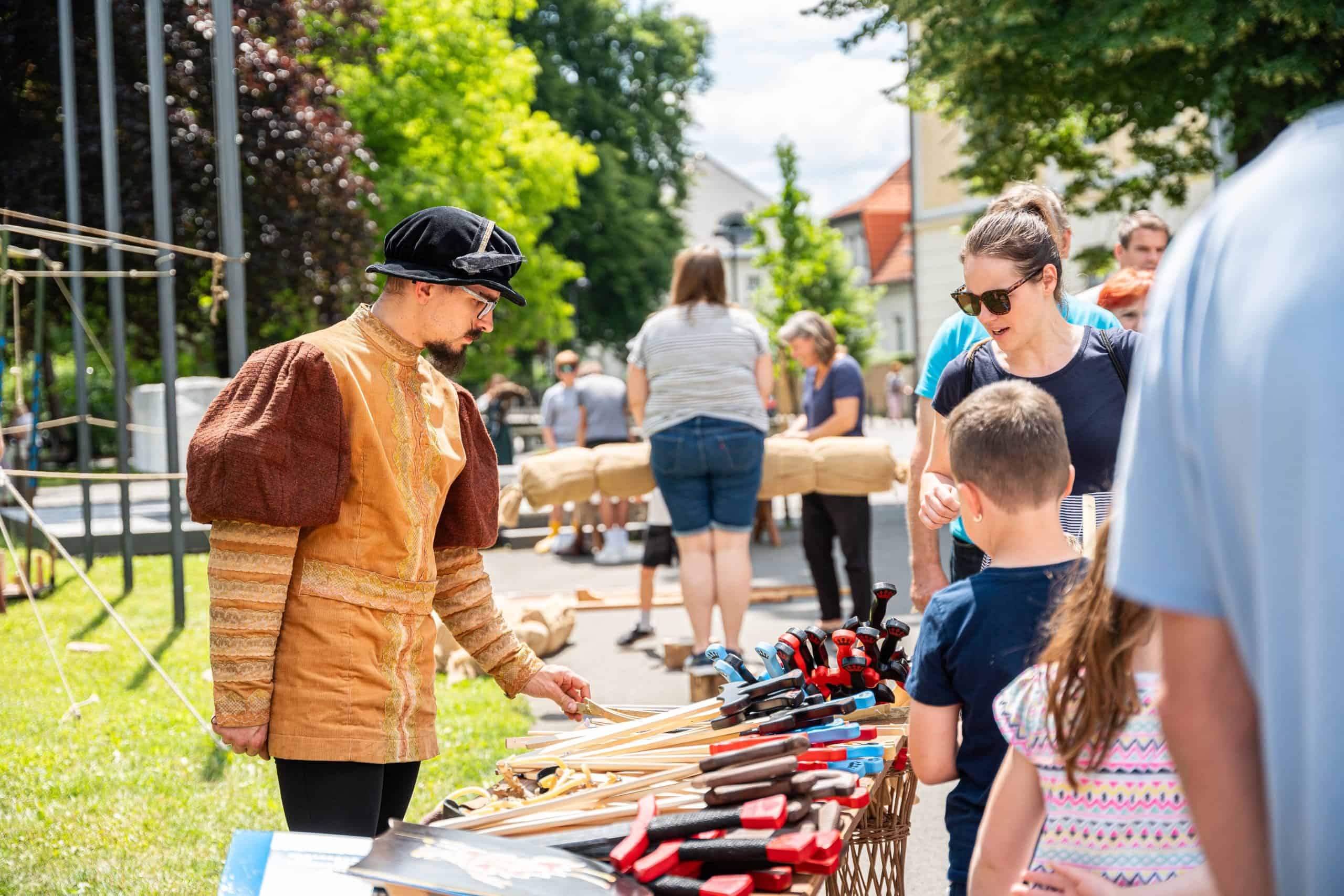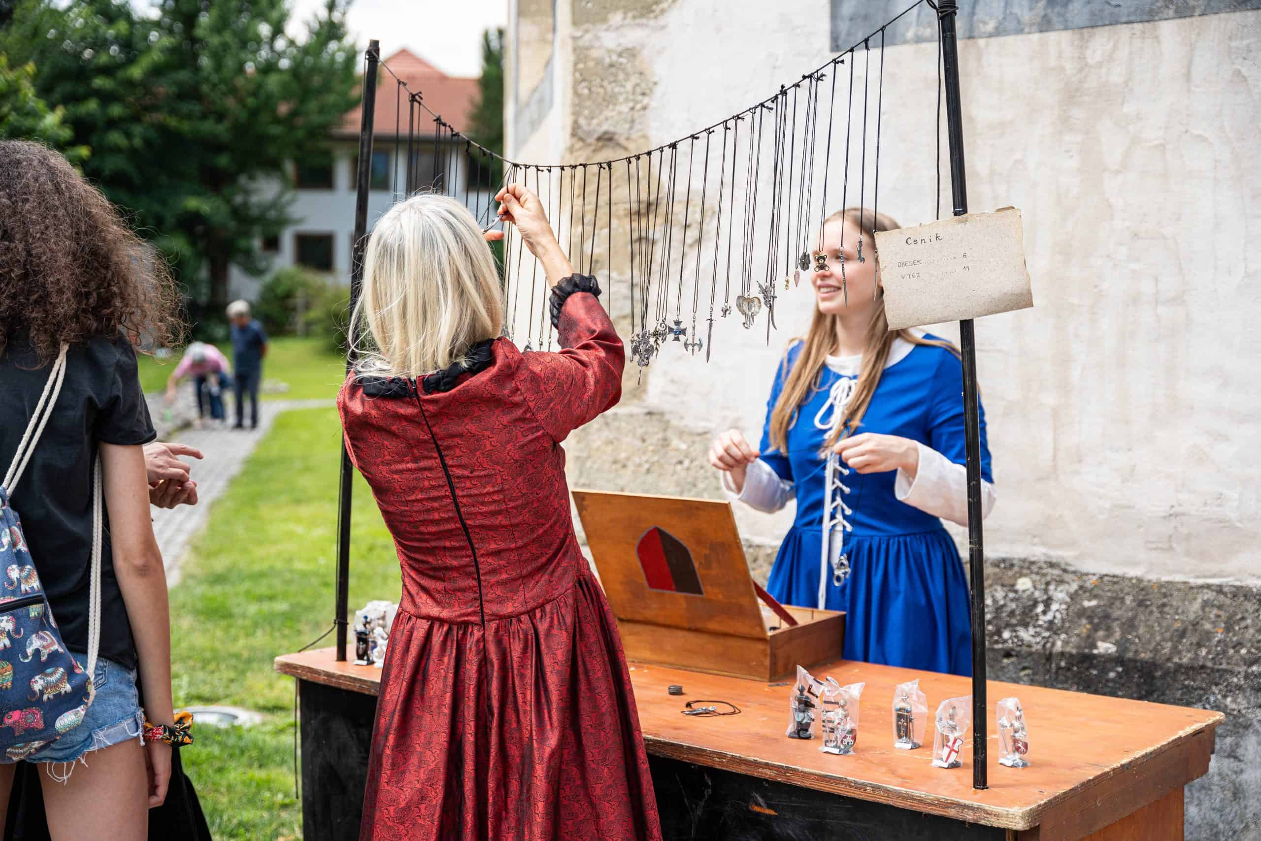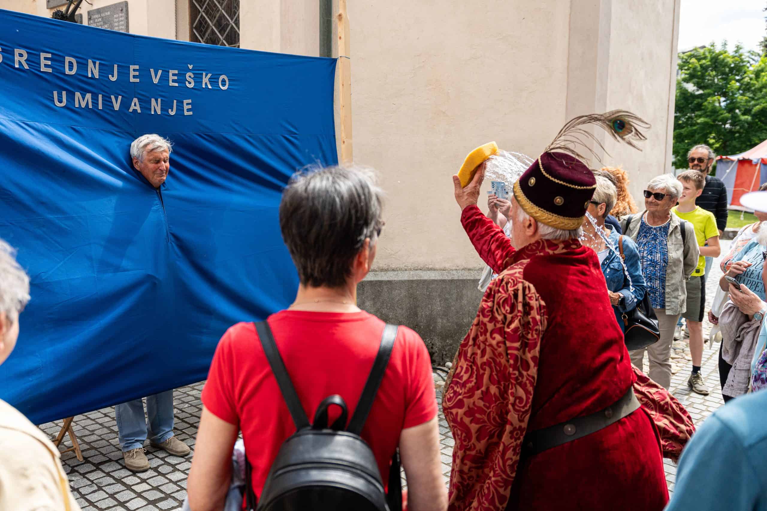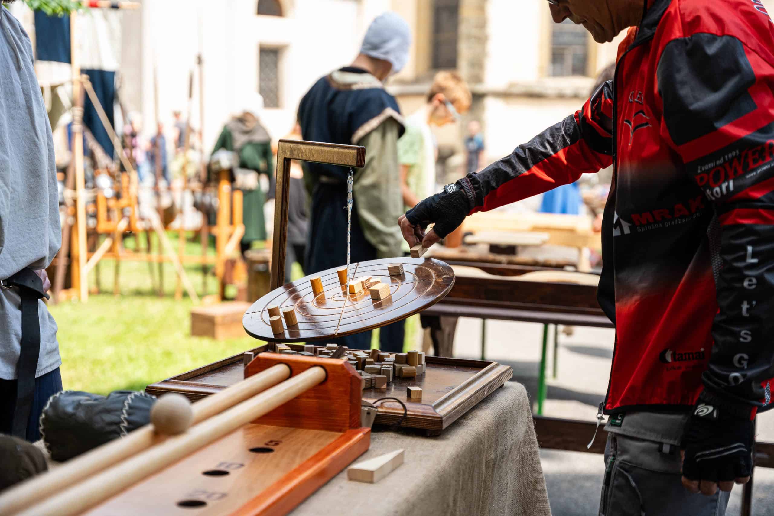 Prebivalci in obiskovalci lahko na srednjeveški tržnici trgujejo, barantajo in kupujejo z originalnimi srednjeveškimi novčiči iz nekdanje mestne kovnice. Za pijačo in jedačo poskrbi krčma Pri merjascu, kjer je na voljo zelo pestra in slastna ponudba.
