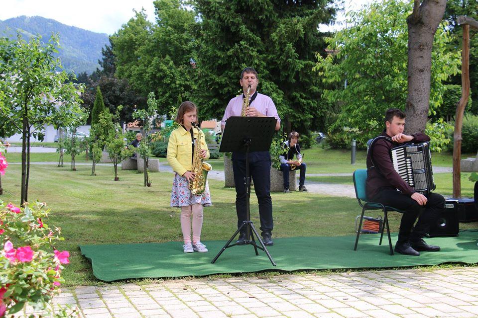 Včeraj so v parku Koroškega doma starostnikov v Slovenj Gradcu nastopili učenci in učitelji Glasbene šole Slovenj Gradec.
