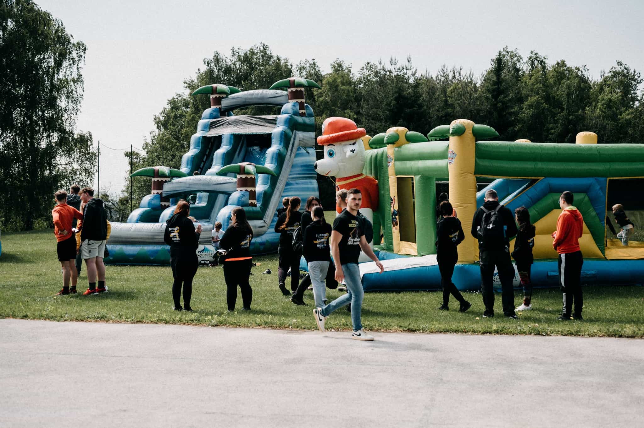 Kmalu je posijalo sonce in dopoldanski dež je bil hitro pozabljen. Druženje je bilo veselo, za najmlajše so poskrbeli v Hop&Jump z napihljivimi igrali, ki so še dodatno risala nasmehe in iskrice v otroških očeh. Starejši otroci in starši pa so se lahko preizkusili v nogometu in košarki.