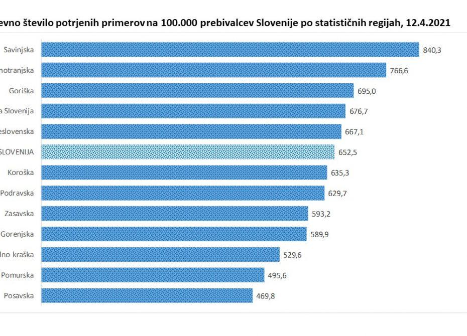 Trend obolelosti s koronavirusom v Sloveniji na dan 12. 4. 2021 (00:00-24:00):