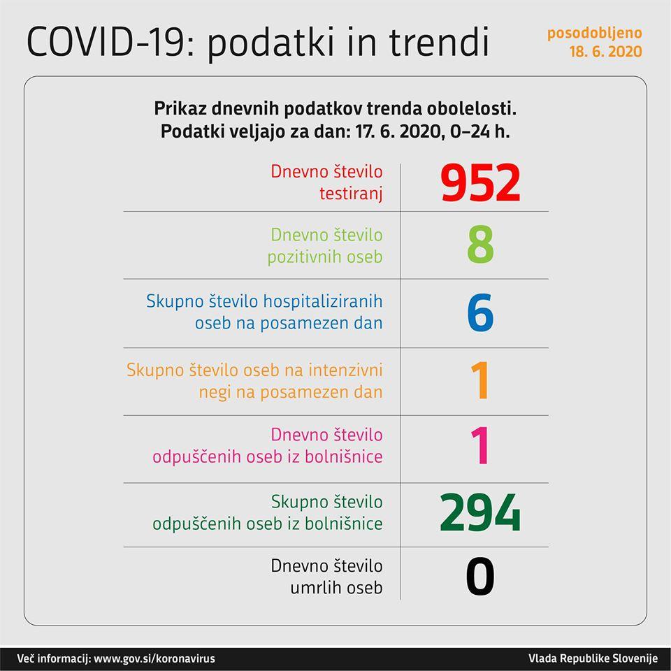 Trend obolelosti s koronavirusom v Sloveniji in podatki za dan 17. 6. 2020 (00:00–24:00):