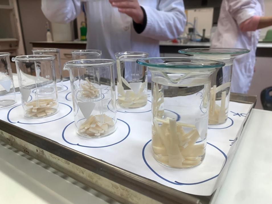 Z omenjenimi smernicami so študenti razdelali izziv, pregledali literaturo, pripravili eksperimentalni načrt, pripravili biokompozitne materiale in jim določili lastnosti. Študenti so izbrali najboljšo recepturo, na podlagi katere so pripravili material za izdelavo posodic v podjetju Plastika Skaza.