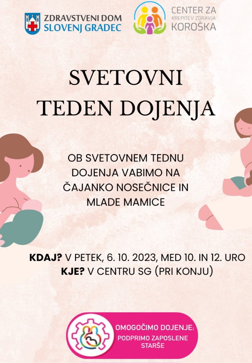 Osrednji dogodek pa bo danes, 6. oktobra 2023 med 10. in 12. uro na glavnem trgu v Slovenj Gradcu, in sicer čajanka za podporo dojenju.