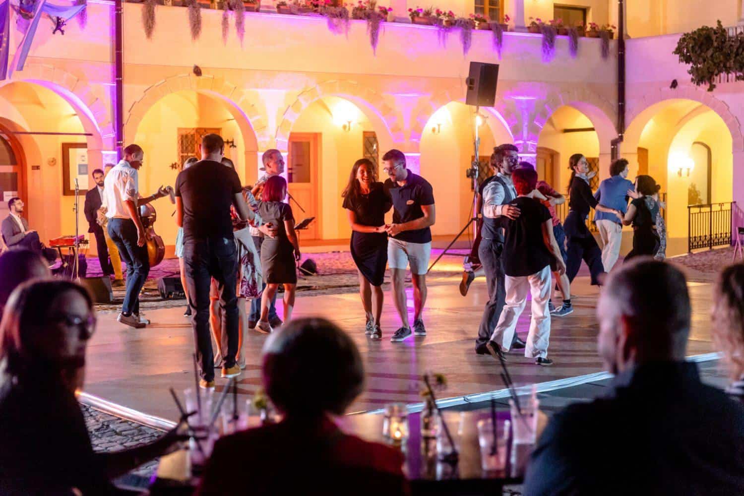 Veliki finale dogodka pa je sprememba atrija Rotenturn v koncertno prizorišče s plesiščem. Povabili so »The Coquette Jazz Band« iz Avstrije, ki ima mednarodno zasedbo in ki že vrsto let blesti na jazz ter swing sceni. »So bili že v Sloveniji, ampak že tako dolgo nazaj, da so jih vsi pogrešali. K nam so prišli v rahlo okrnjeni zasedbi, saj so jih zdesetkale bolezni, ampak so zapolnili vrzel ali bolje rečeno so se okrepili s saksofonistom Jakom Kopačem, ki je prezentiral svoje vrhunsko znanje. Zasedba je idealno ustrezala v ambient in dodala energijo plesišču, plesalci so jim ves čas vračali z neprekinjenim plesom.«