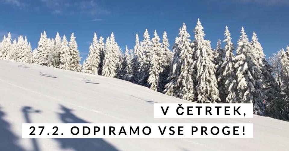 Danes je ljubitelje smučanja in zimskih radosti razveselilo nekaj na novo zapadlega snega. S Kop pa prihaja še ena dobra novica: " Jutri, v četrtek, 27. februarja, odpiramo vse proge na Kopah! Izkoristite odlične pogoje in se odpravite na smuko."