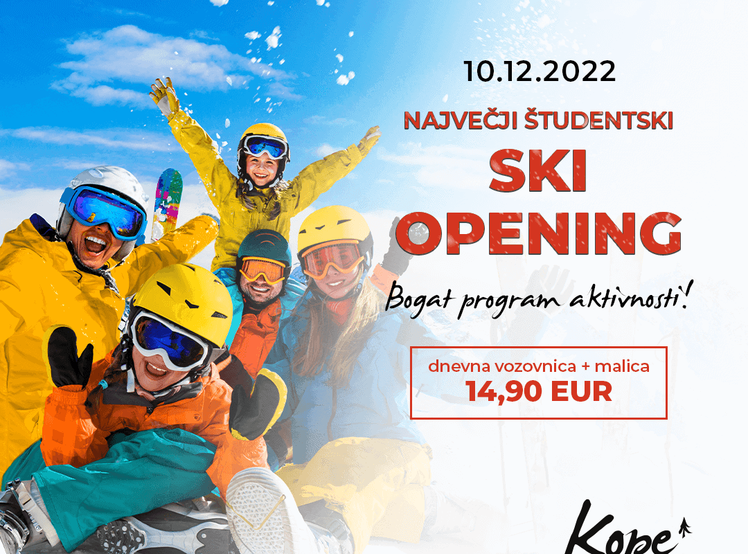 Akcija za študente: smučajte za samo 14,95 EUR. Ski opening bo prijazen do študentske denarnice. Za manj kot 15 eur boste lahko vsi študentje smučali cel dan in še za malico bodo poskrbeli. Čaka pa vas še posebna koda za popust ŠTUDENT-29. Vozovnice veljajo samo 10. decembra in to s predloženo študentsko izkaznico.