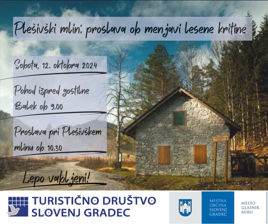 Plešivški mlin je pomemben del naše kulturne in etnološke dediščine in člani TD Slovenj Gradec z veseljem sporočajo, da ima sedaj tudi novo strešno kritino. Nova streha pa predstavlja izjemno pomemben mejnik za njegovo ohranjanje, kar bodo ovekovečili s posebnim dogodkom prihajajočo soboto, 12. oktobra 2024.