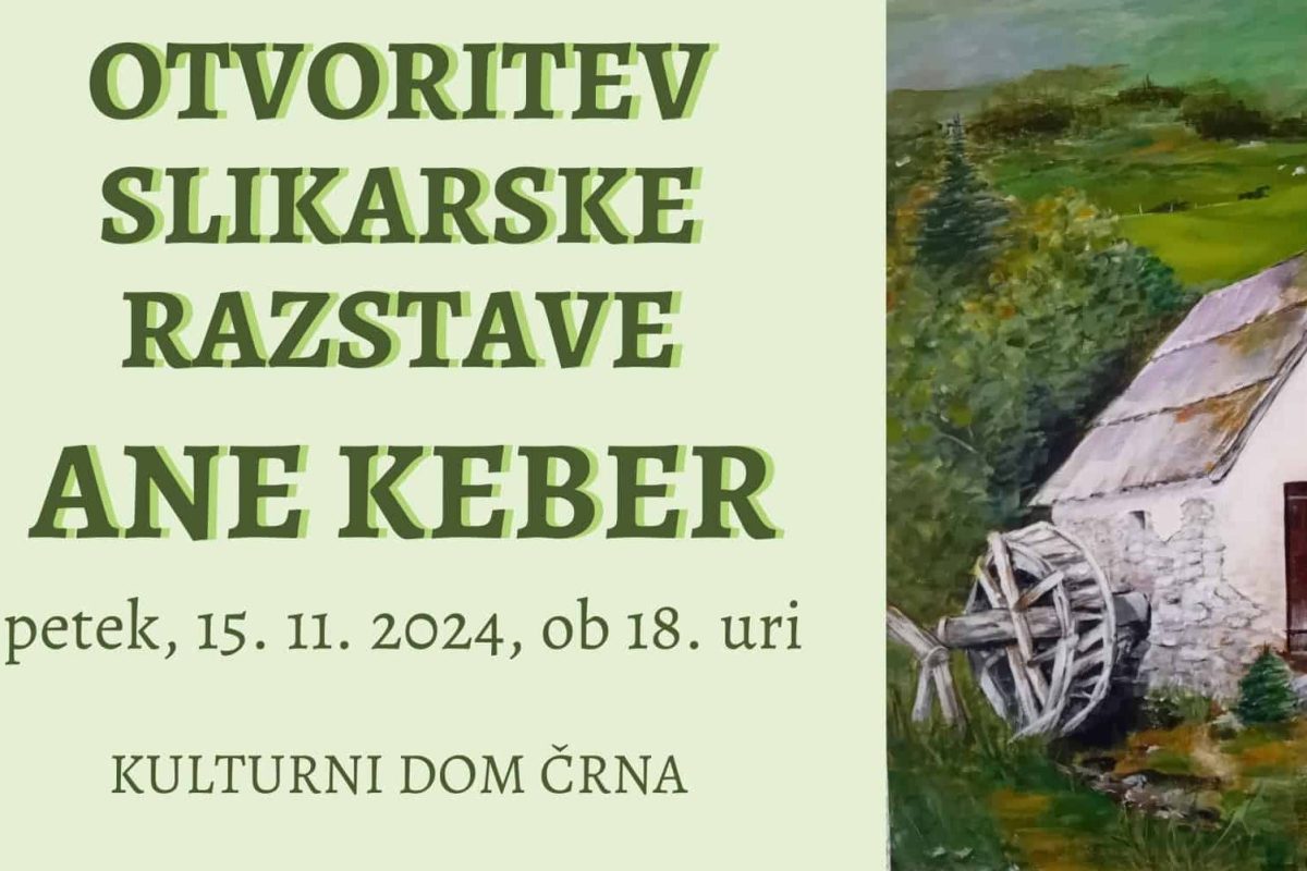 Občina Črna na Koroškem vas vljudno vabi na slikarsko razstavo Ane Keber. Otvoritev razstave bo ta petek, 15.11.2024 ob 18. uri v Kulturnem domu Črna.