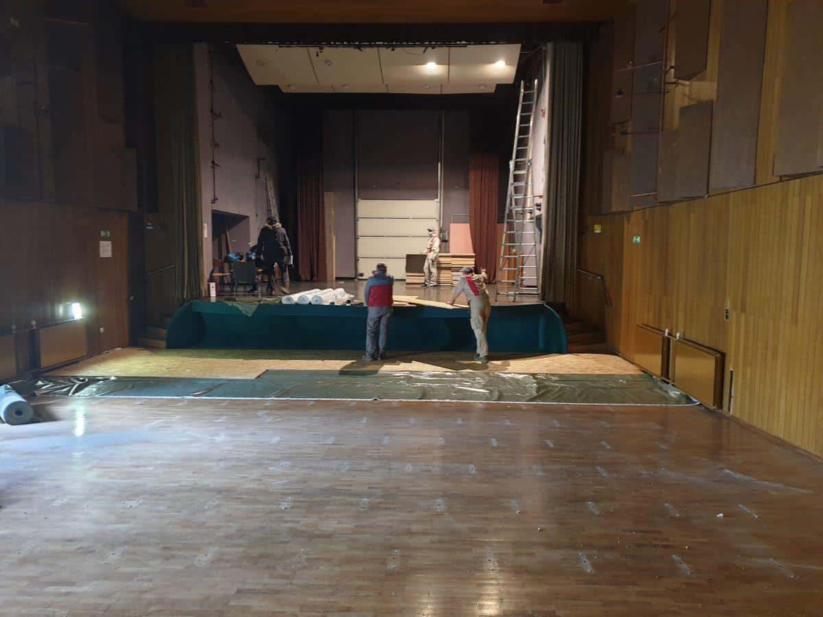 V prvi fazi prenove so izvedli nekatera dela v dvorani in na odru. Namestili so nove akustične obloge za izboljšanje akustike, modernizirali scenske osvetlitve (namestitev 4 lučnih vlakov, od katerih je na 2 vlakih omogočeno dvigovanje in spuščanje le teh preko elektro motornih pogonov), namestili nove luči za razsvetljavo. Lotili so se tudi obnove elektroinstalacij, instalacij za javljanje požara ter strojnih instalacij. Zbrusil in polakirali so parket ter zbrusili in pobarvali pod na odru.