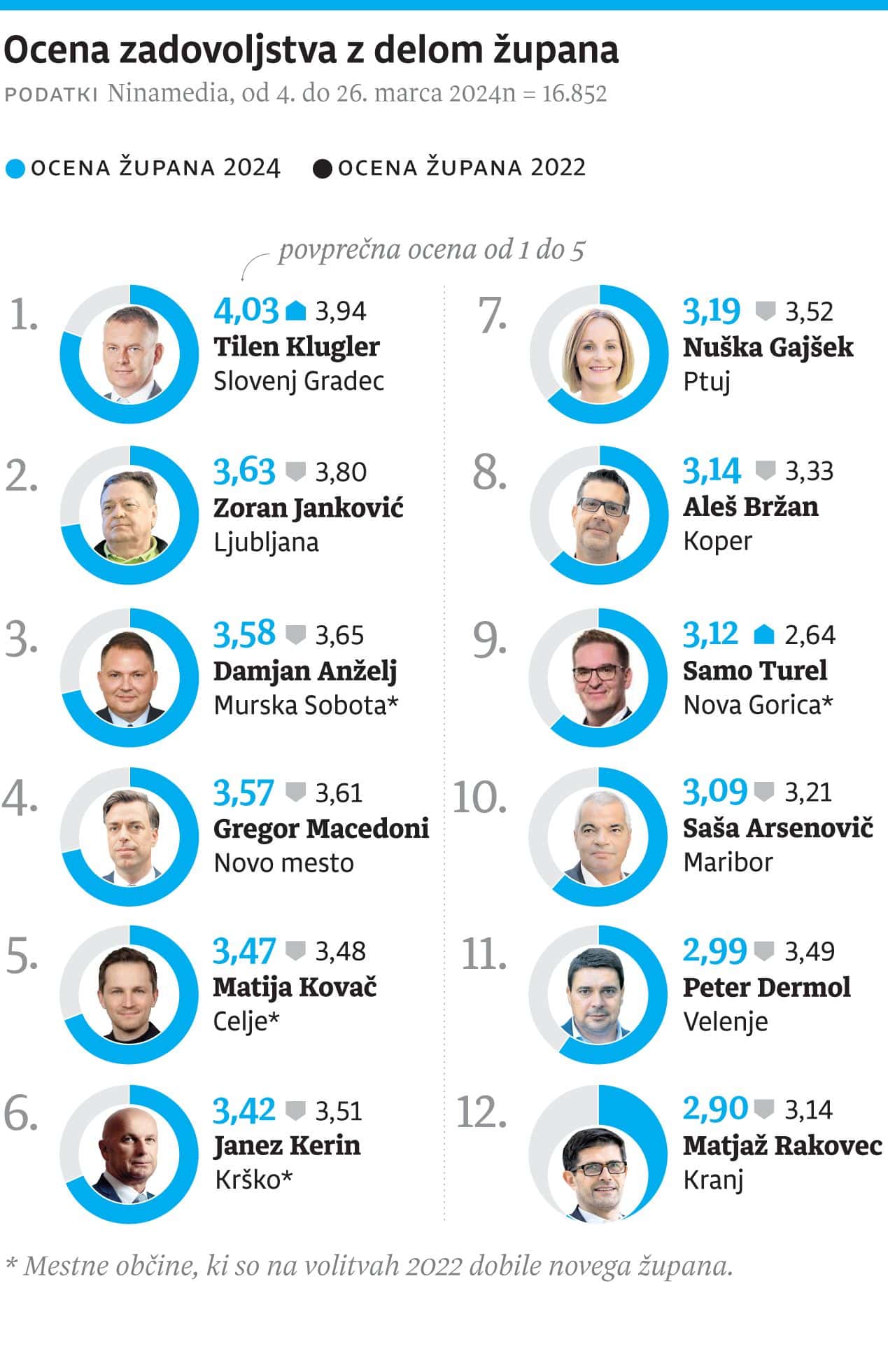 V raziskavo agencije Ninamedia je bil vključen vzorec prebivalcev, ki je obsegal 16.852 ljudi. Delo županov so vprašani ocenjevali z ocenami od 1 do 5.